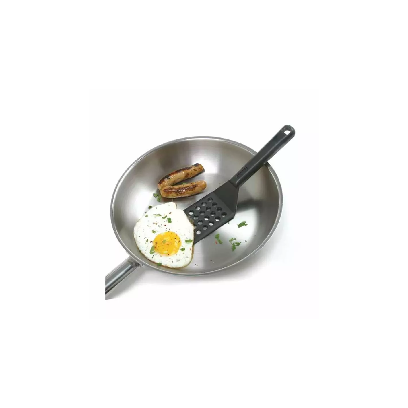 La espátula es perfecta y ligera, estrecha y plana con un borde biselado que se desliza bajo la comida fácilmente. Esta espátula es ideal para huevos, queso a la parrilla y pescado. Además de galletas y productos horneados. Seguro para utensilios de cocina antiadherentes. Los agujeros que el exceso de grasa o aceite drene.