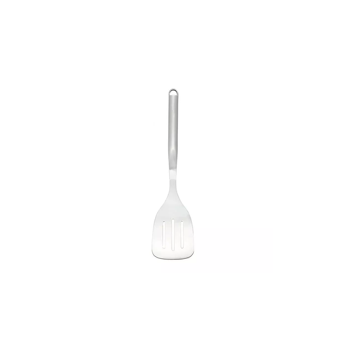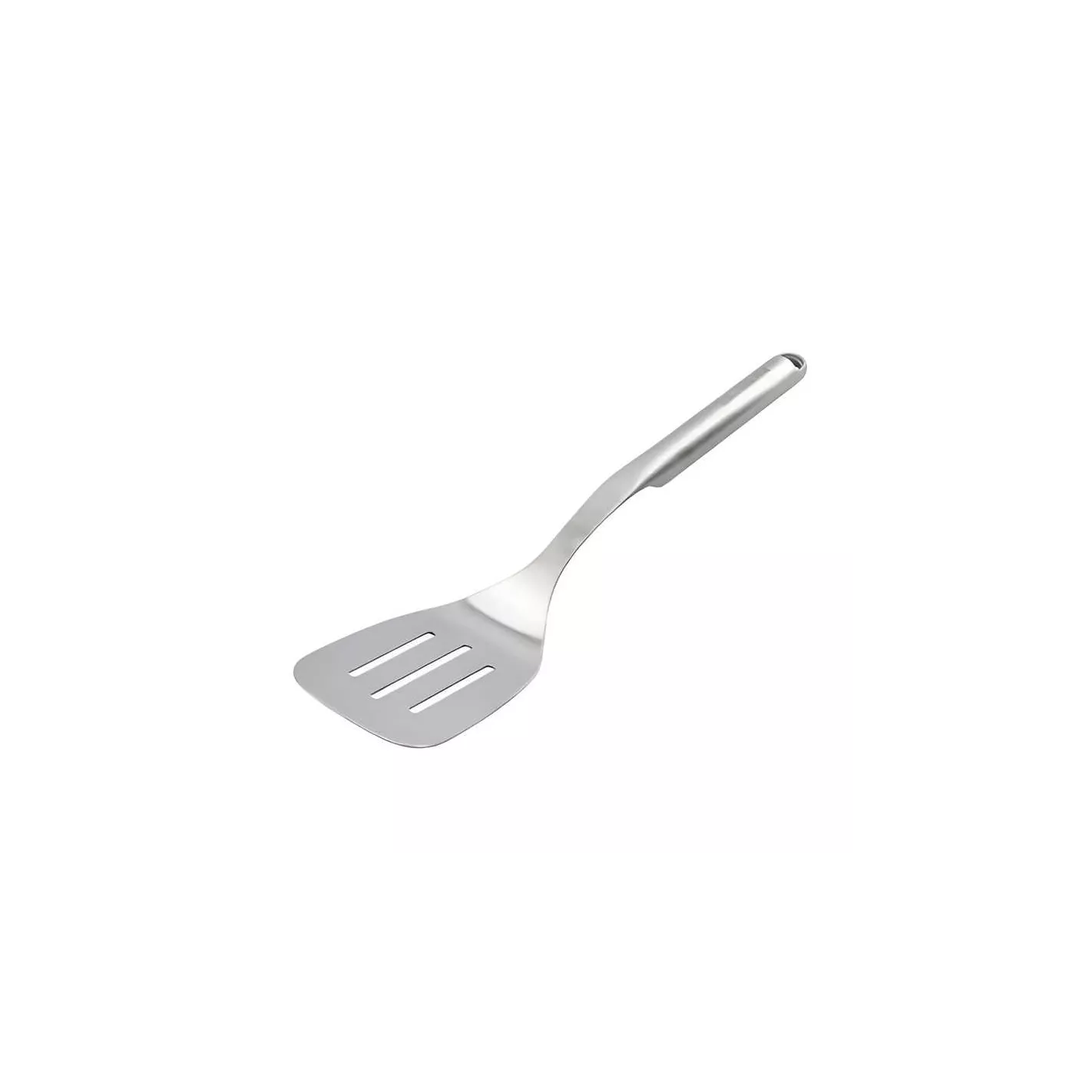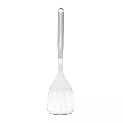 Esta espátula ranurada Premium es un elemento esencial en la cocina. Úsela para revolver, dar vuelta, levantar y escurrir los alimentos con facilidad. Esta herramienta, duradera para el uso diario, está hecha de acero inoxidable, lo que también le da un aspecto elegante y moderno.