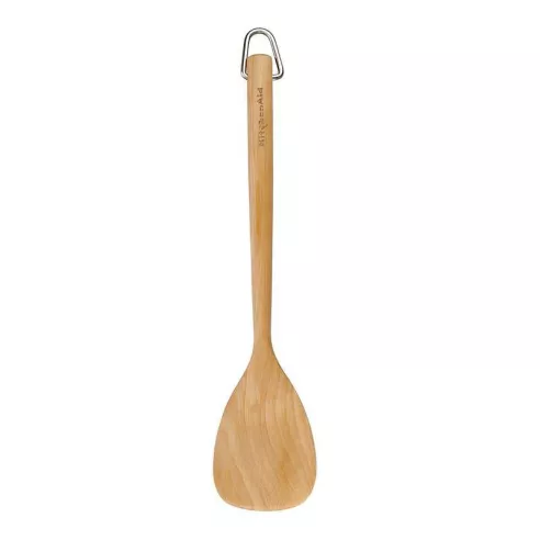 Es ideal para revolver y dar vueltas a los alimentos. También puede utilizarla en lugar de una cuchara de madera para revolver y saltear. Úsela para deslizarla debajo de los alimentos y liberarlos de manera limpia. Esta espátula, hecha de madera de abedul sostenible y ecológica, es segura para usar en todos los utensilios de cocina, incluidos los antiadherentes.