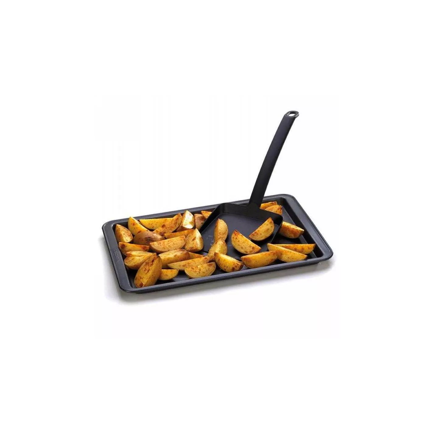 Gracias a sus dimensiones, la cucharada práctica perfecta recoge y transfiere fácilmente, por ejemplo, papas fritas, papas al horno, platos al horno, lasaña y albóndigas. La hoja ancha está hecha de nylon resistente al calor de primera clase y es resistente a temperaturas de hasta 210° C. Puede usarlo para todo tipo de platos, es especialmente adecuado para platos con un revestimiento antiadhesivo, cuya superficie no se dañará. Gracias a su forma, la cuchara es adecuada para recoger platos de bandejas para hornear, así como platos para hornear profundos o bandejas más grandes.