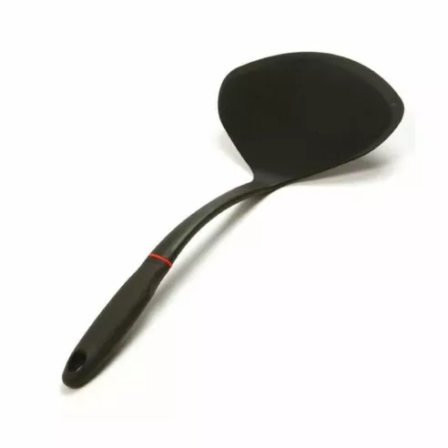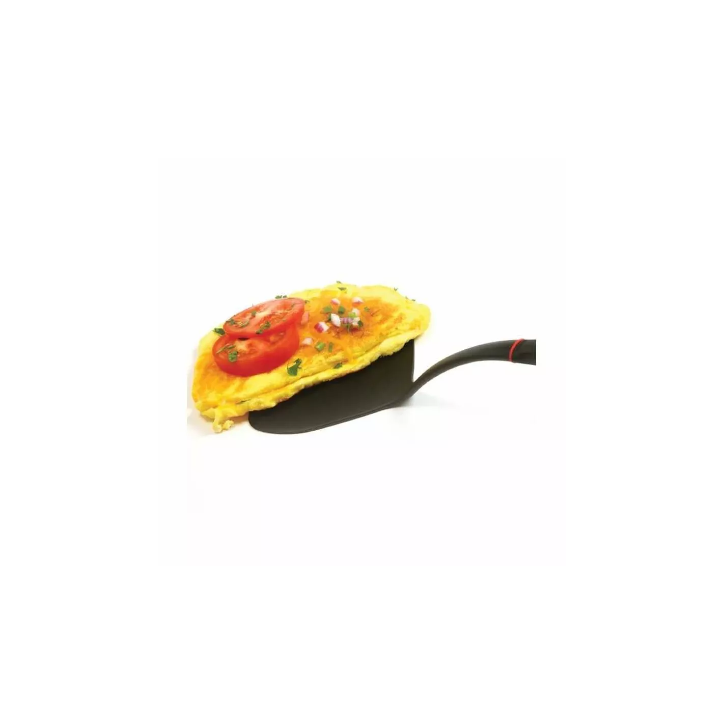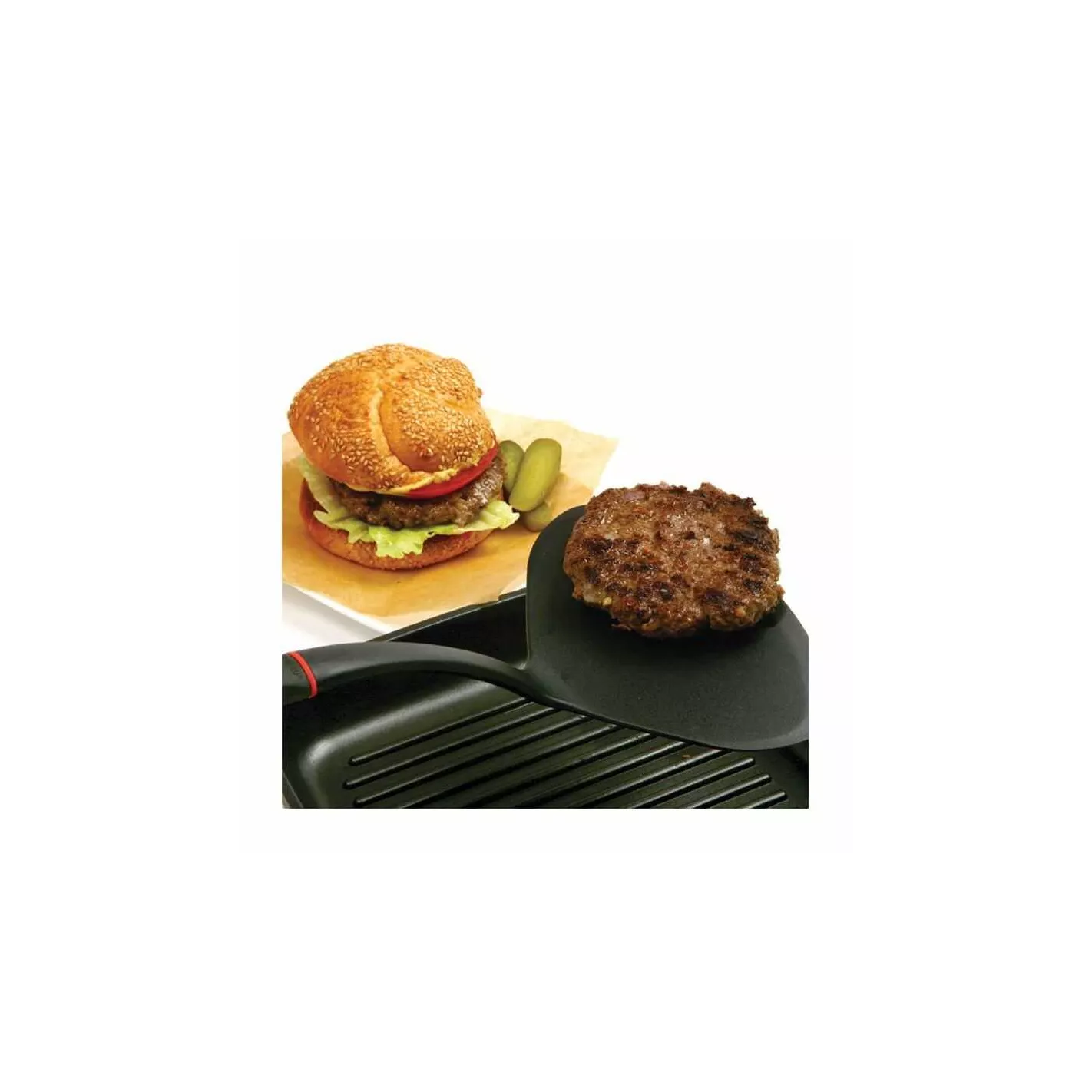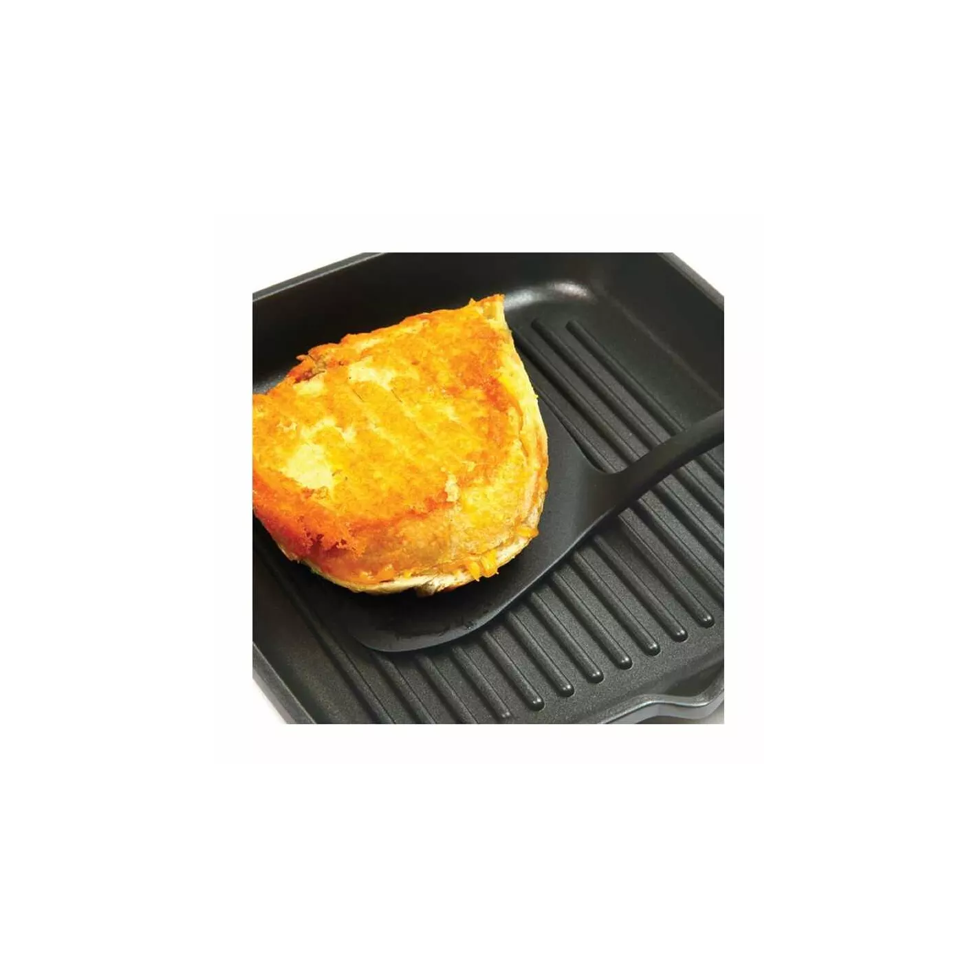 La cabeza ancha permite girar tortillas, panqueques, crepes, queso a la parrilla, sándwiches, hamburguesas, pescado, pollo y filetes con facilidad. El borde biselado se desliza debajo de los bordes y brinda soporte mientras gira la comida. Solo toma un turno para dar vuelta la comida con éxito. Puede usarlo en cualquier superficie, incluso antiadherente. Alta resistencia al calor 400ºF.