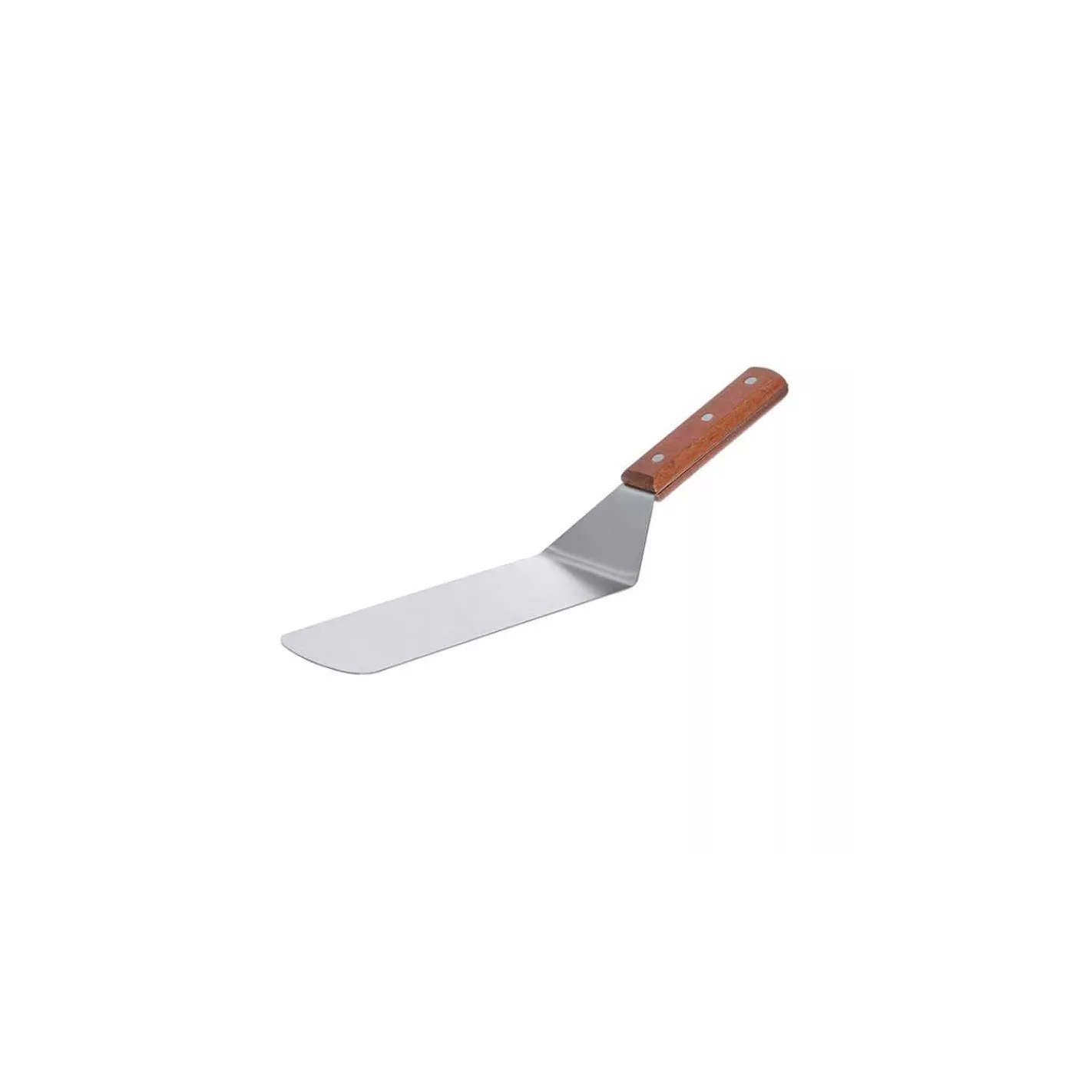 Construido con un acero inoxidable duradero, presenta un acabado de alto pulido para que se vea genial y duradero. Este utensilio cuenta con un mango solido remachado resistente. Use esta espátula para voltear la carne o el pollo para promover una cocción pareja.