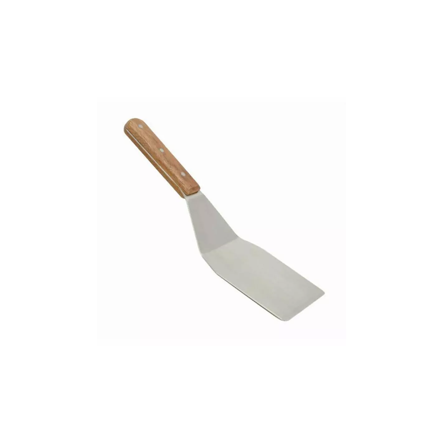 Gracias a su construcción de acero inoxidable, este volteador resistirá el uso intensivo sin deformarse. Para mayor comodidad, esta espátula está construida con un mango de madera para un agarre cómodo mientras mantiene sus manos lejos del calor.