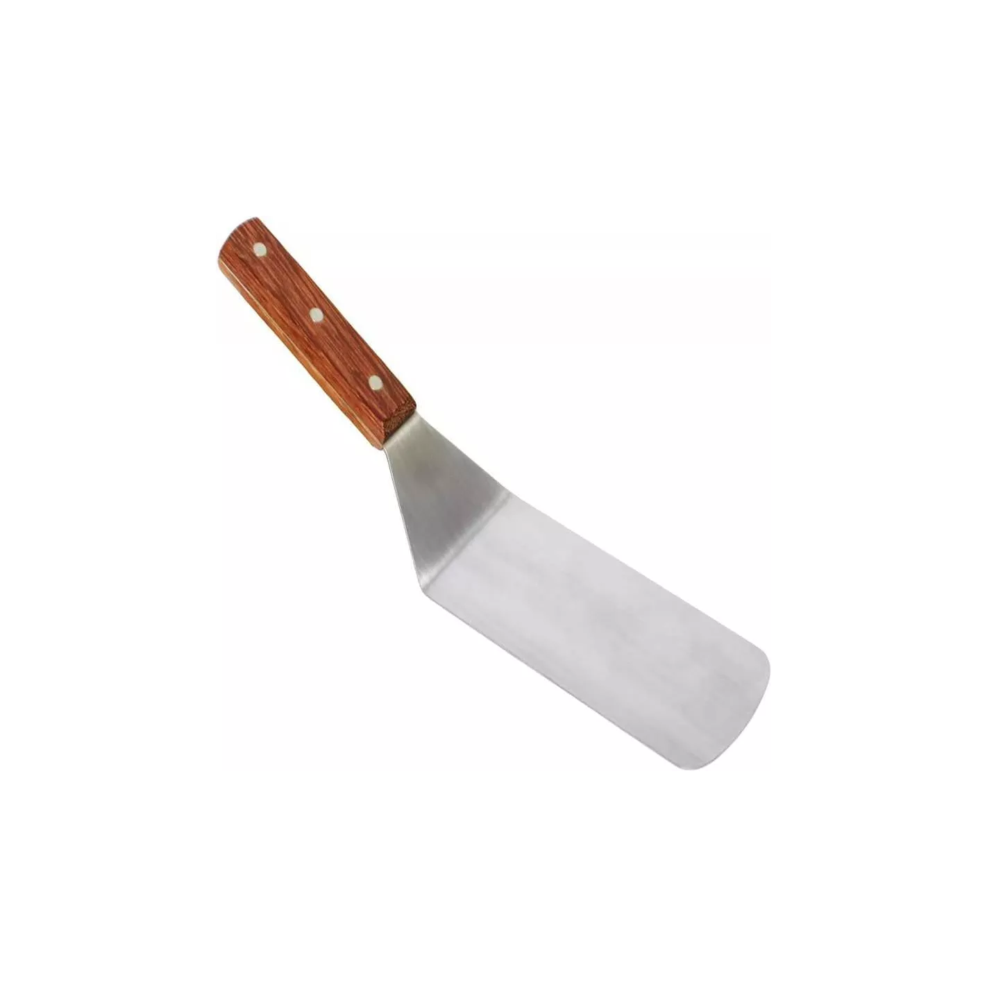 Hecho de acero inoxidable, esta espátula es fácil de limpiar y resistirá altas temperaturas sin deformarse. Para mayor comodidad, esta espátula tiene un mango de madera que proporciona un excelente equilibrio y control.