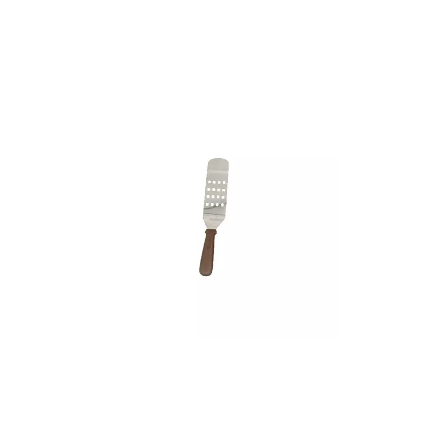 Espátula con forma especial para poder voltear sus alimentos en la cocina y su diseño con perforaciones para drenar el aceite de sus alimentos antes de servirlos.