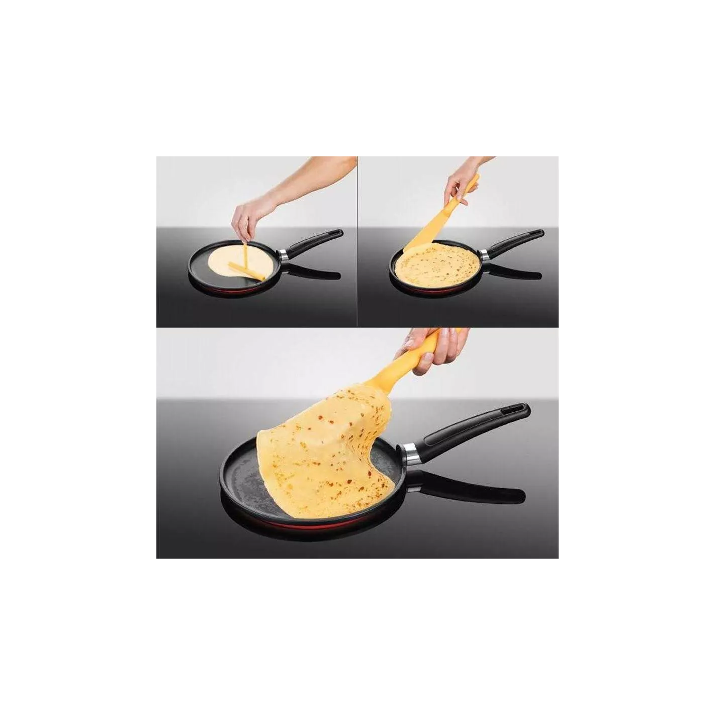 Este set es ideal para quienes disfrutan de preparar crepas caseras y desean tener las herramientas adecuadas para obtener resultados consistentes y profesionales. La espátula es larga y delgada, permitiendo deslizarse fácilmente debajo de la crepa para voltearla o retirarla sin riesgo de que se rasgue. El rodillo ayuda a esparcir la masa de manera uniforme , asegurando que la crepa tenga un grosor constante, lo que favorece una cocción pareja y evita que queden partes más gruesas o crudas.
