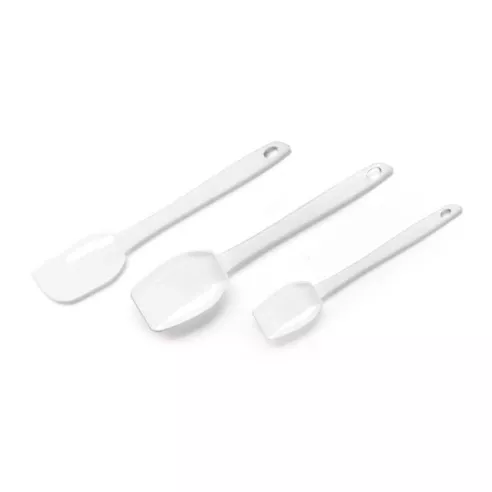 Diseñadas con cabezales de silicona duraderos y asas de nylon de fácil agarre, las 3 espátulas de este juego esencial son resistentes al calor hasta 525 °F y perfectas para mezclar, raspar y plegar ingredientes.