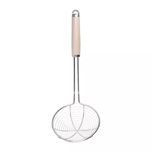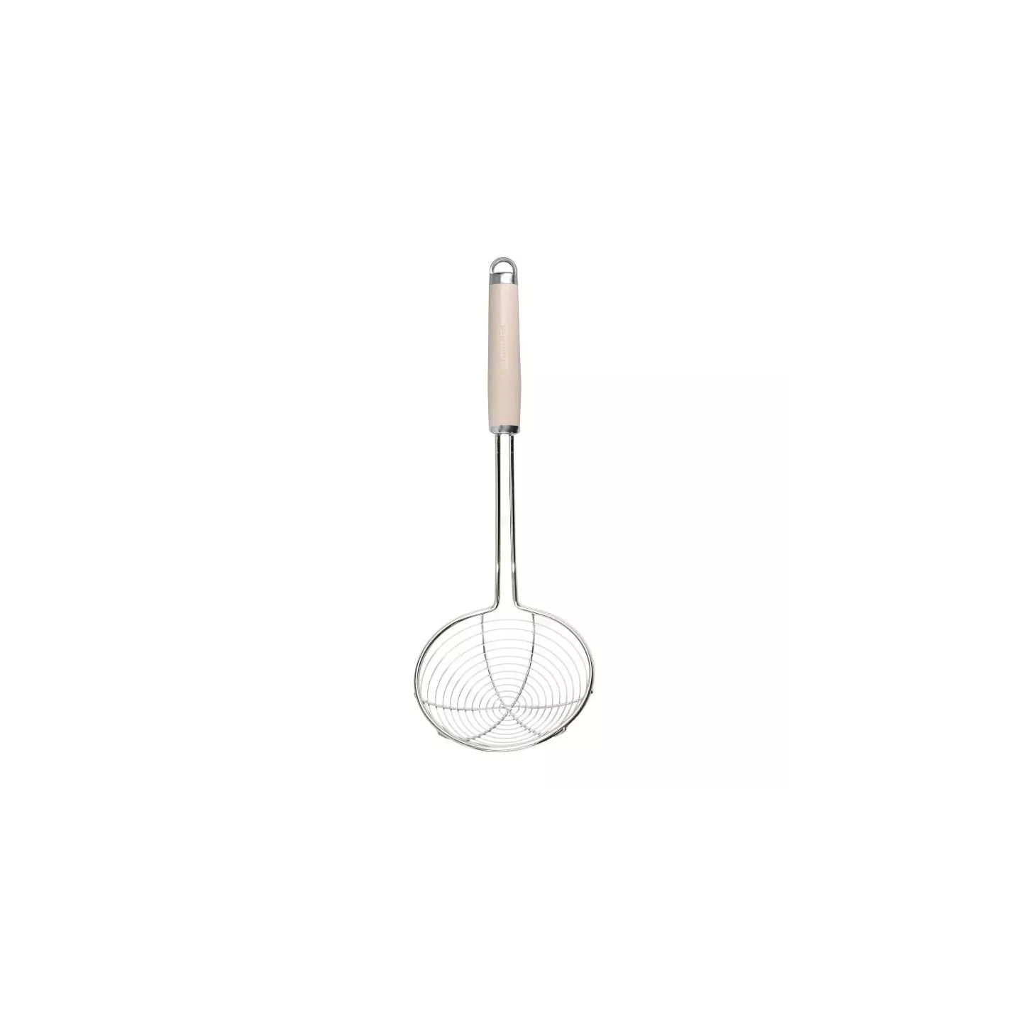 La cesta de acero inoxidable extra ancha permite que los líquidos se escurran rápidamente, lo que lo convierte en una herramienta ideal para saltear o usar con un wok. El cabezal del colador está hecho de acero inoxidable resistente y resistente al óxido.