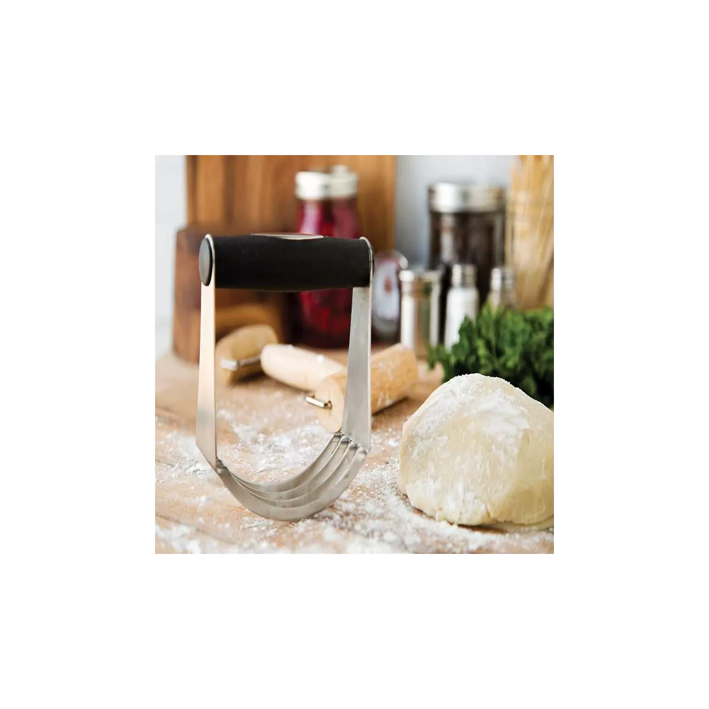 ¿Quieres reducir tu tiempo de mezcla a la mitad? Hornear pasteles y galletas desde cero siempre produce un mejor resultado, pero el largo proceso de preparación puede hacer que desees que haya una manera más fácil. ¡Para mezclar sin esfuerzo, utilice este mezclador de masa! Sus robustas cuchillas de acero inoxidable de línea preferida cortarán la mantequilla en harina o azúcar, para una combinación perfecta de ingredientes húmedos y secos. Para un uso que le encantará, el estribo cuenta con un mango de agarre cómodo que se adaptará perfectamente a su palma. Resta algo de estrés del proceso de cocción y repostería. Mezcla más fácil. Medidas: 1.75 x 4.25 x 5 pulgadas