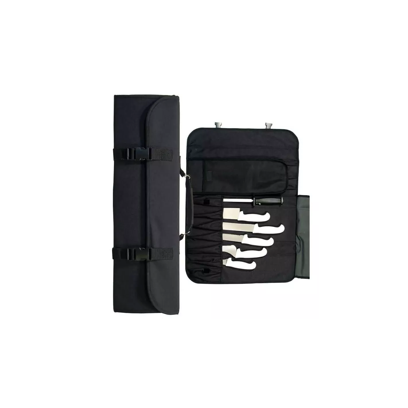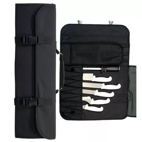 Una herramienta indispensable para todo Chef o estudiante de cocina que necesite transportar varios cuchillos a la vez con la máxima seguridad. Cuenta con una capacidad amplia para poder guardar también herramientas de cocina.MATERIAL: TELA