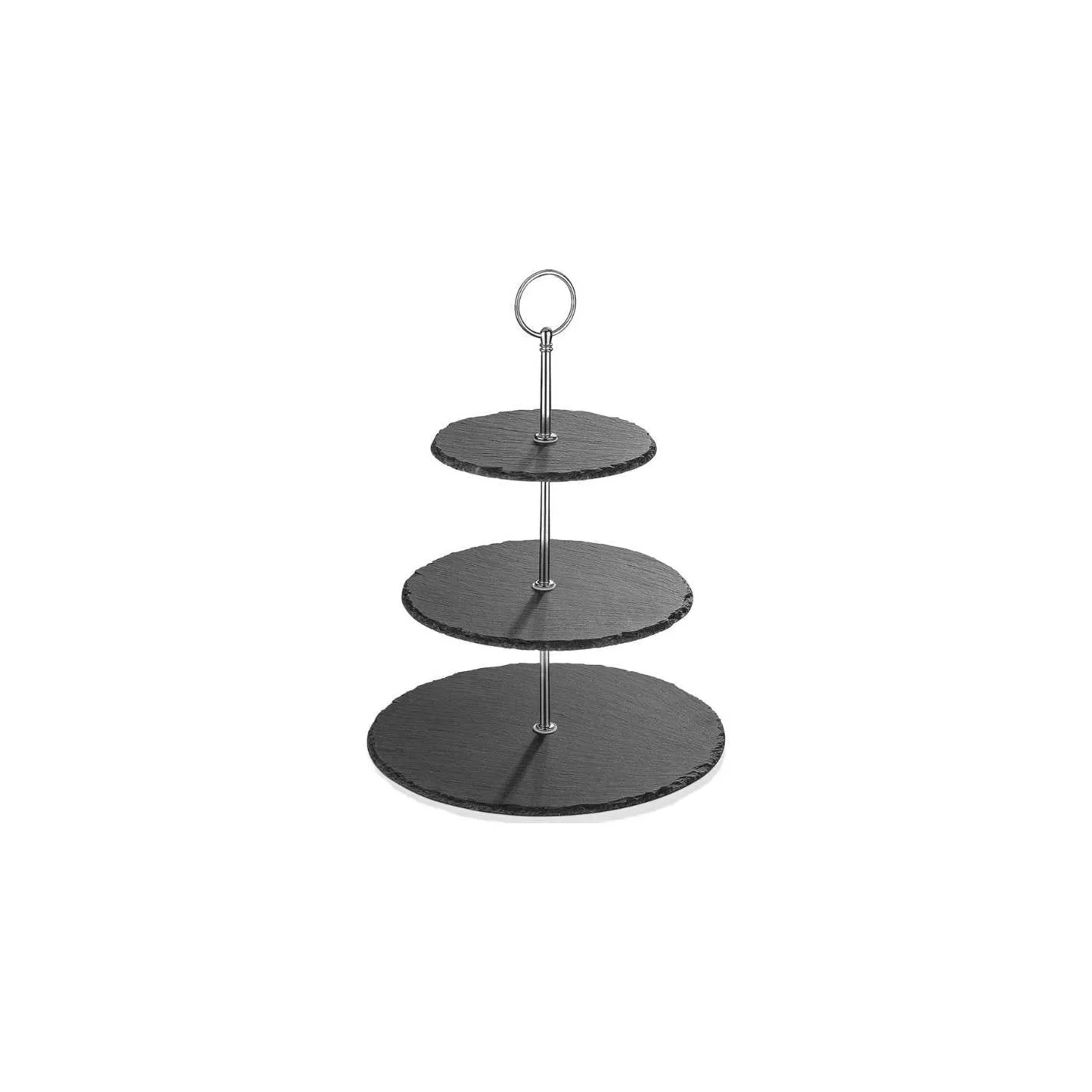 Exhibidor Triple Redondo de Piedra Negra de 30 x 33 Centimetros MASTER CHEF CS2301-33R