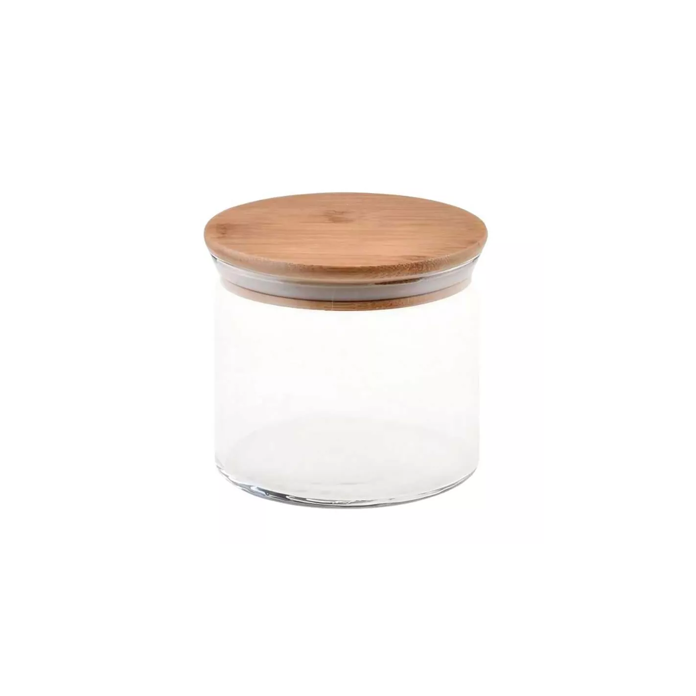 El recipiente de vidrio con tapa de madera aporta estilo a la organización básica de la cocina. El cuerpo de vidrio transparente muestra cualquier artículo almacenado dentro mientras contiene frescura con la tapa de madera.