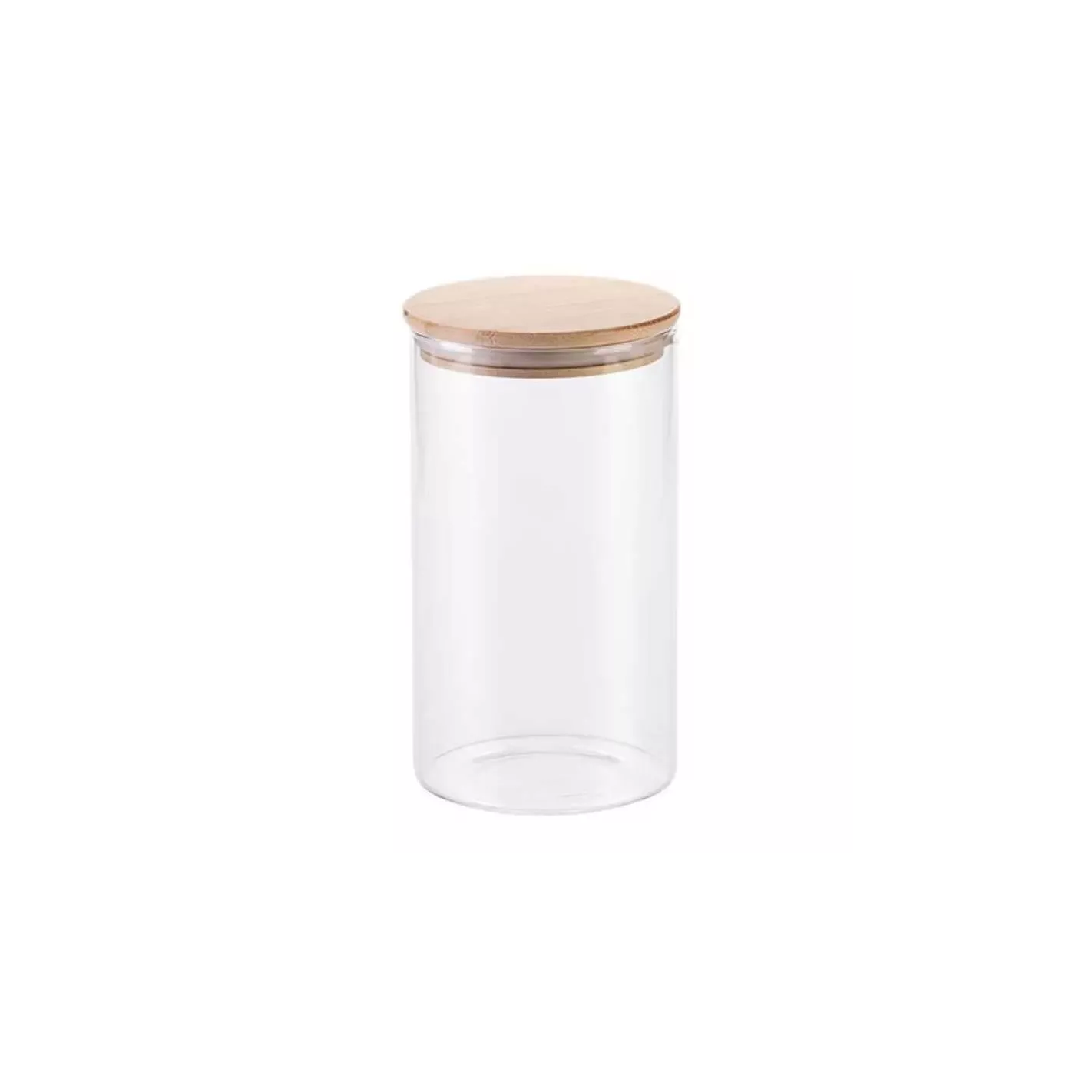El almacenamiento y la identificación de productos secos es simple con este recipiente de vidrio transparente resistente al calor que cuenta con una hermosa tapa de madera de olivo que resalta los materiales simples y naturales. Úselo para almacenar cualquier cosa, desde café y té hasta frutas secas.