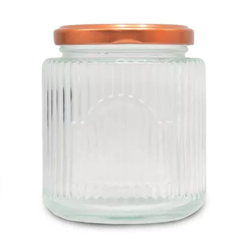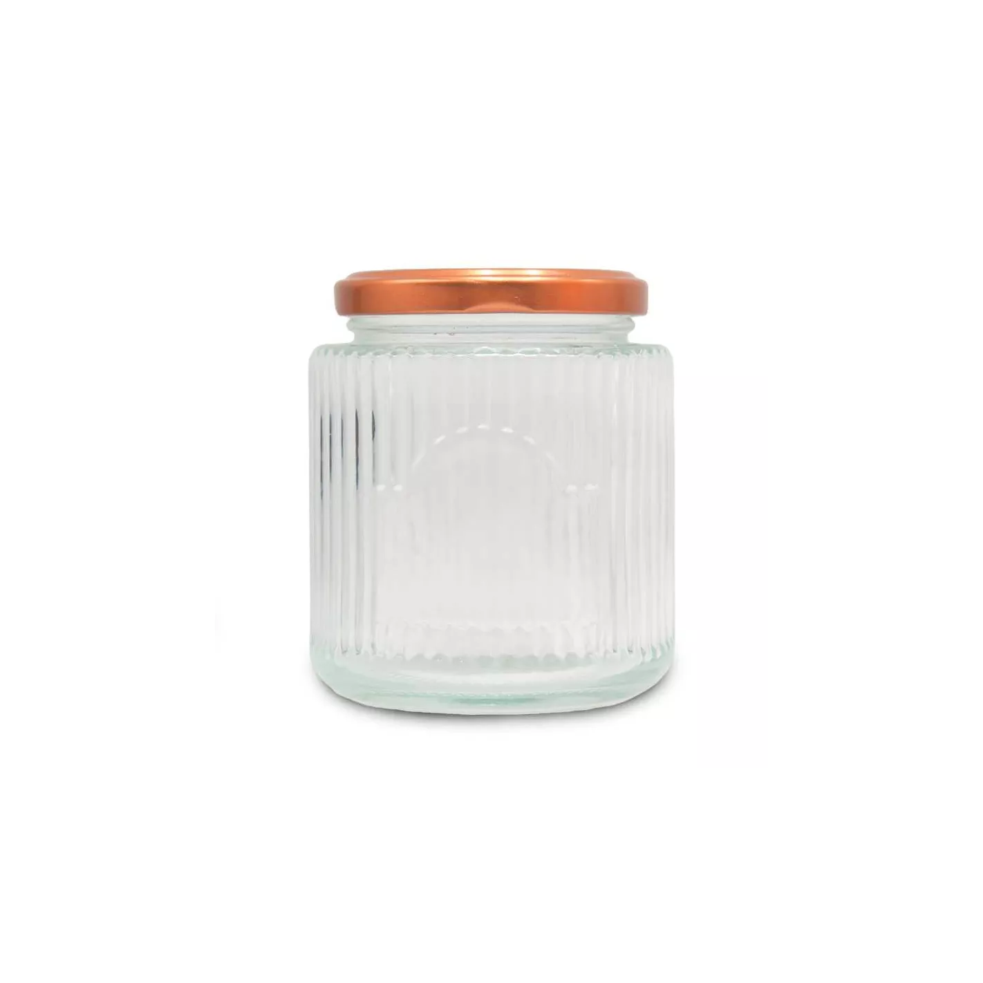 Frasco de Vidrio Estriado con Tapa Color Cobre de 380 Mililitros VETRO LXG-016