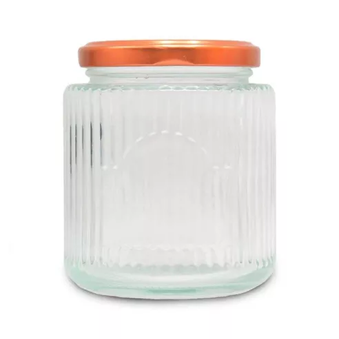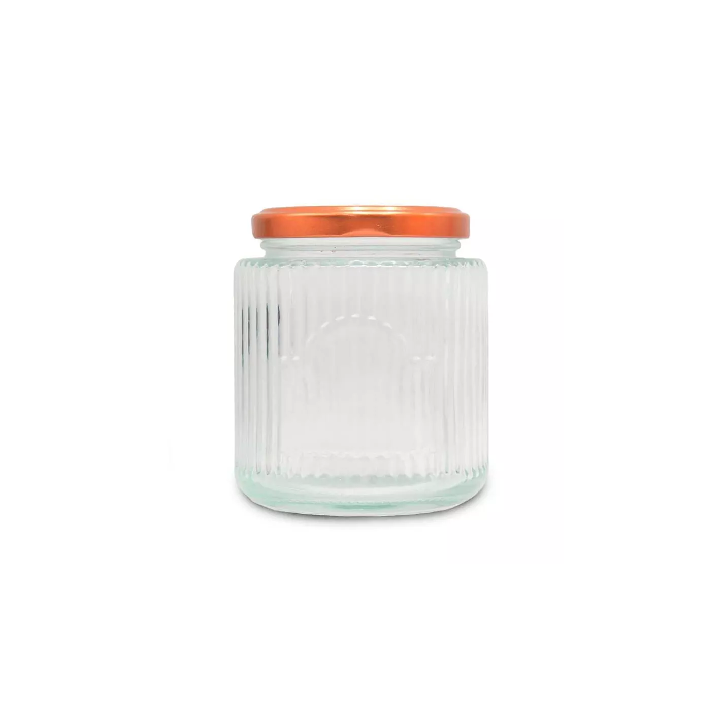 Frasco de Vidrio Estriado con Tapa de Color Cobre de 200 Mililitros VETRO LXG-014