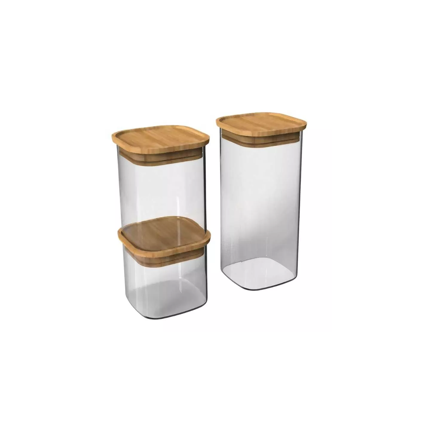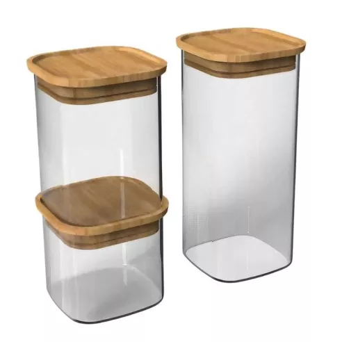 Este kit se compone de 3 frascos de vidrio de borosilicato y una tapa de madera natural con cierre hermético. Este kit es ideal para conservar los alimentos de una forma más higiénica, sin oler ni cambiar su color.
