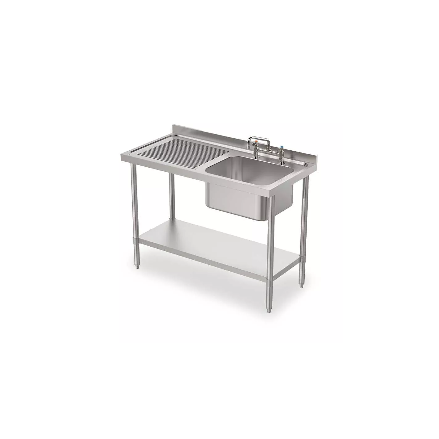 Esta pileta de cocina para estación de trabajo que está diseñado para uso comercial y es independiente, lo que significa que no está fijado a una pared o encimera. Es ideal para usar en ambientes de comedor y tiene un lavabo, desagües espaciosos que ayudan a que la cocina sea más eficiente.FRENTE: CENTIMETROS = 180