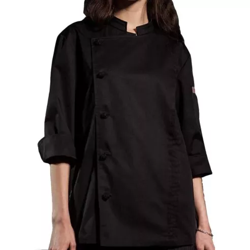 Gabacha de Manga de 3/4 con Botones para Chef de Color Negro Talla L CHECKEDOUT CU1116Z0100F-L