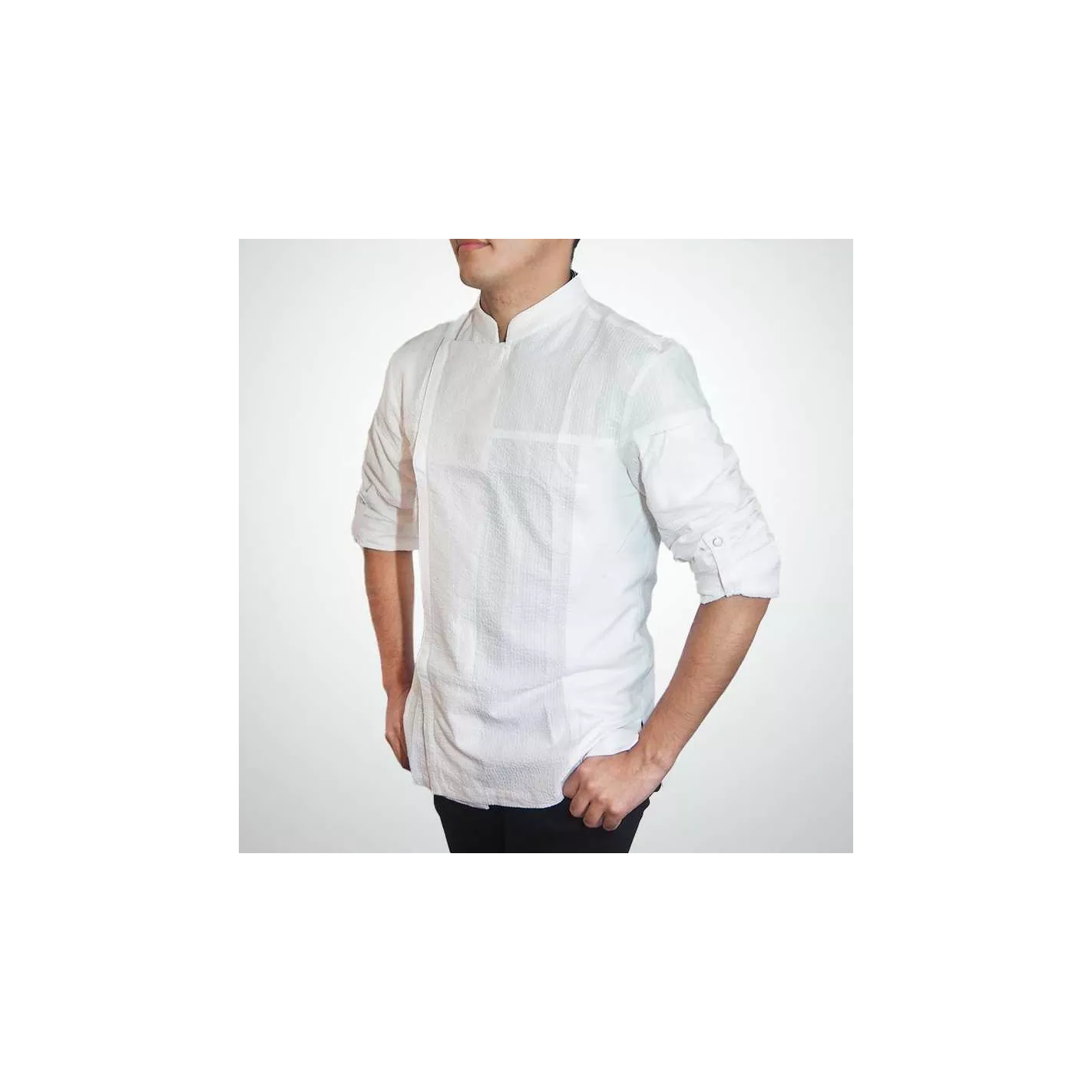 Esta gabacha sirve como parte del uniforme estándar para los chefs en la cocina, proporcionando protección y distinción profesional. Ayuda a proteger la ropa del chef de salpicaduras de alimentos, manchas y derrames durante la preparación de alimentos.