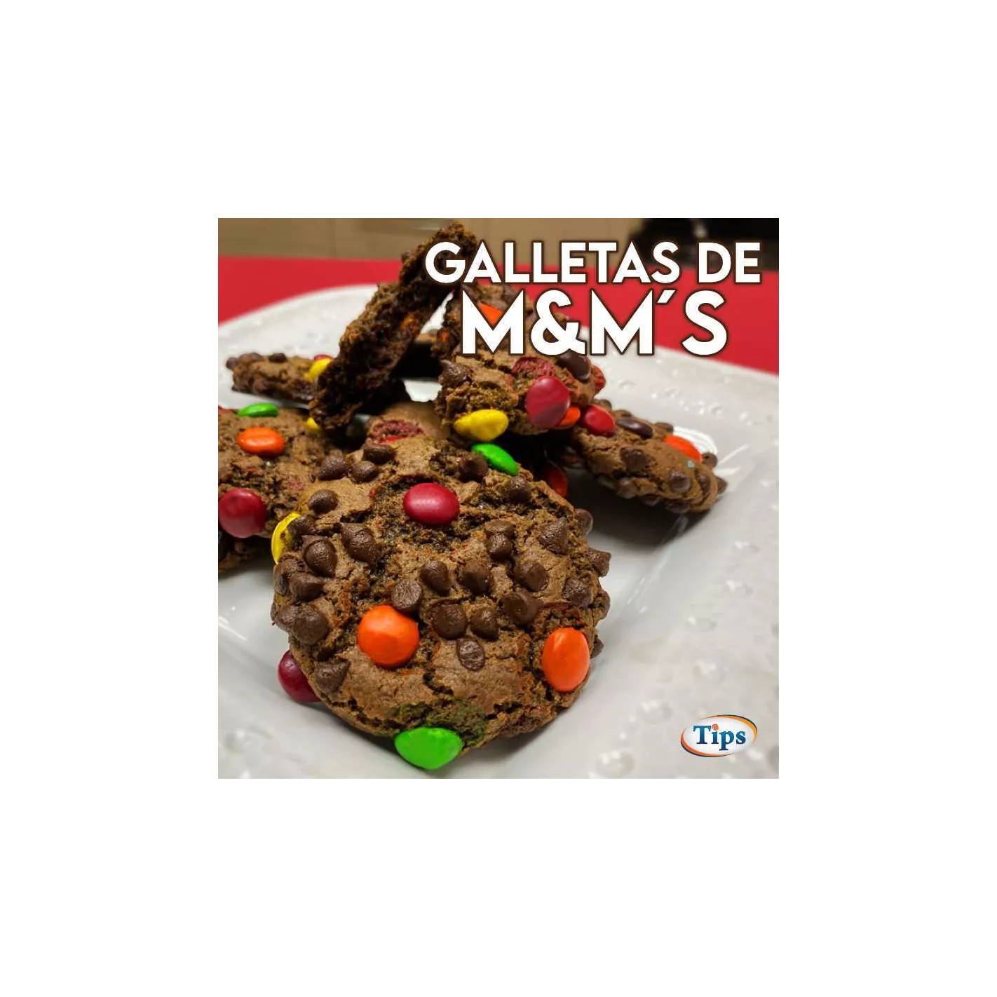 4.Use una cuchara para galletas forme las bolas de masa en una bandeja para hornear con tapete de silicona. Presione mini M y M y chispas de chocolate alrededor de la parte exterior de las bolas de masa.