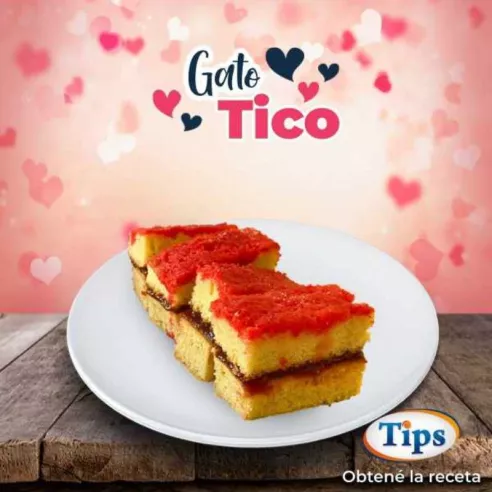 6-Revuelva 1/4 de taza con agua màs colorante rojo y pinte con una brocha la superficie del gato. Rocíe azúcar encima. Parta en trozos rectangulares.