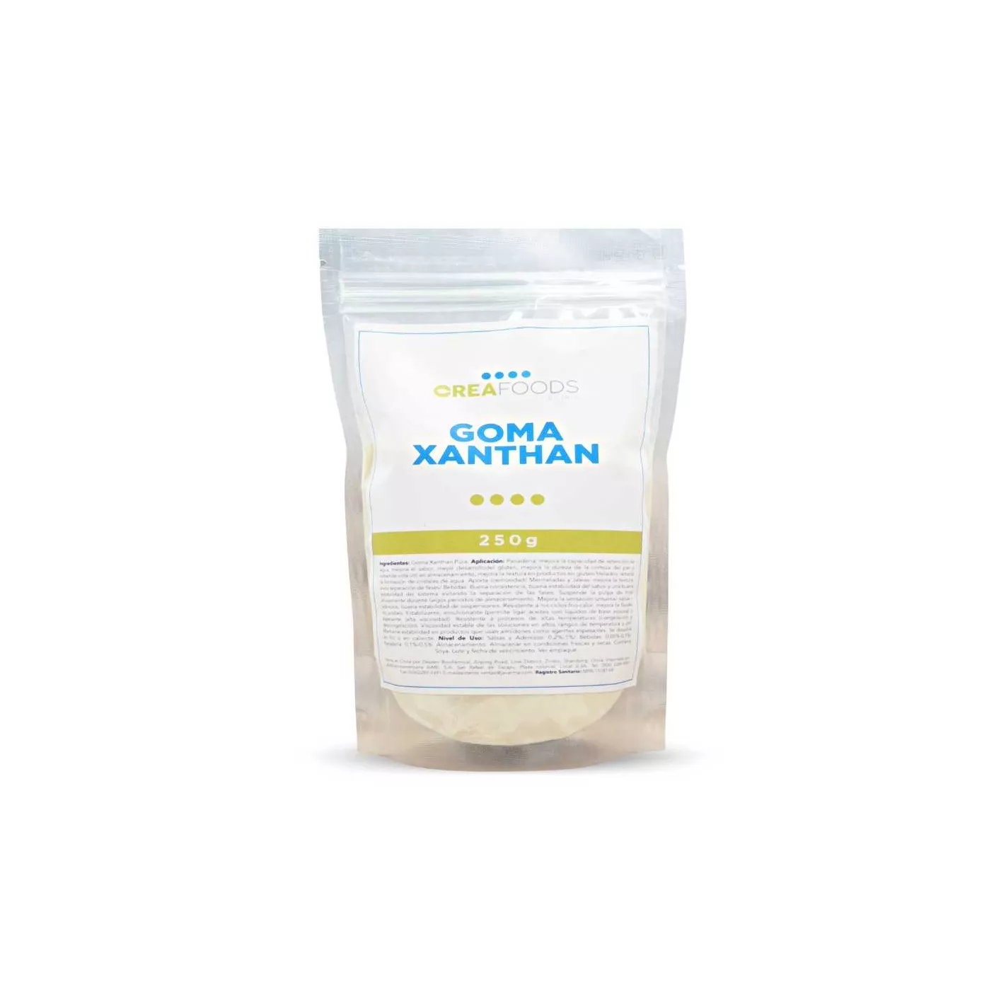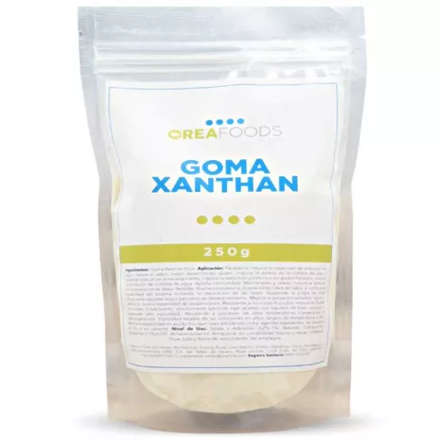 La goma xanthan es una goma que se obtiene como un polvo de color blanco o amarillo pálido, es un producto que se obtiene por la fermentación del azúcar, a partir del almidón de maíz, es también un estabilizador, emulsificante y espesante en los alimentos procesados.USO: DOMESTICO