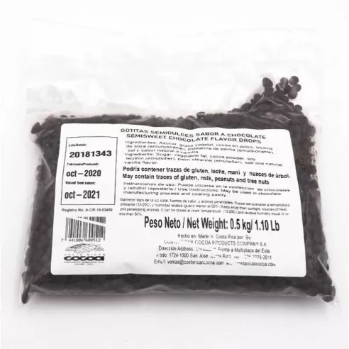 Especial para hornear. Para todas tus preparaciones pero ideal para preparar galletas de chocochips , cupcakes, muffis, como topping de helados y decoraciones. Sabor semidulce .