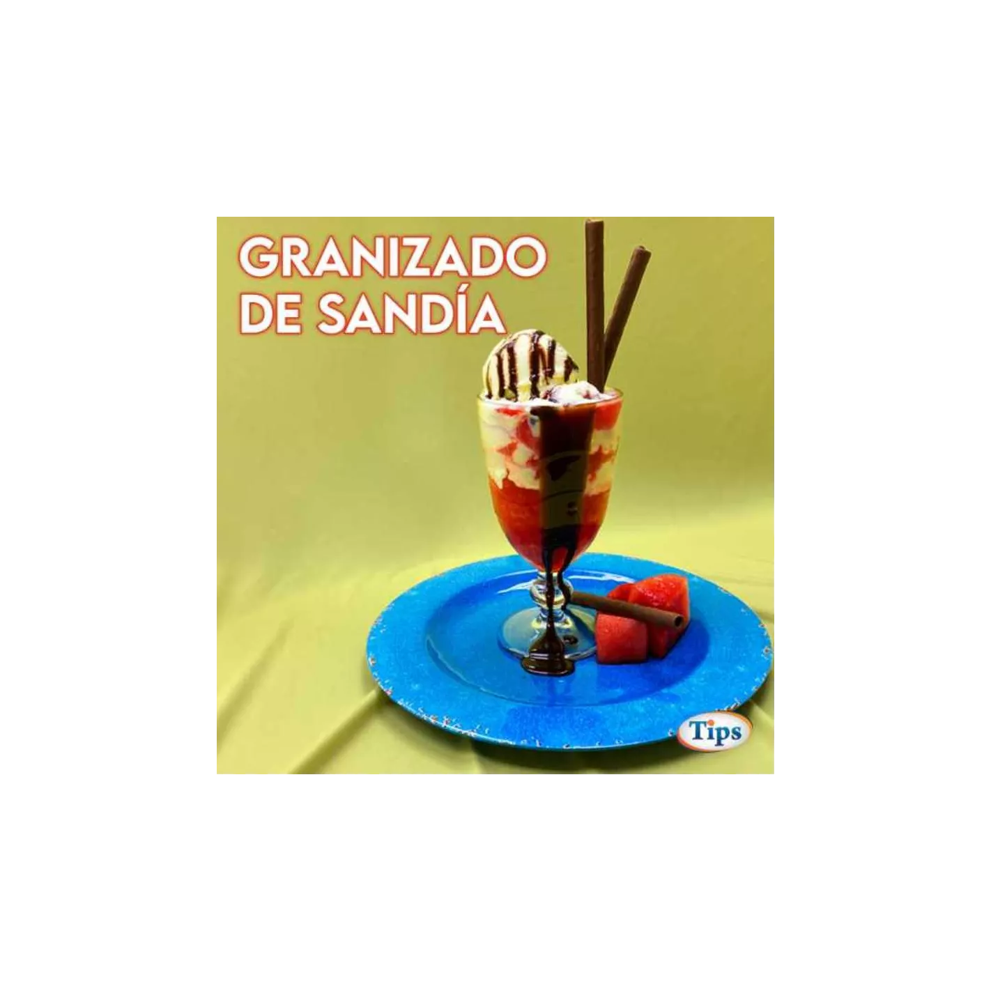 3-Colocamos una capa de sandía, bañamos con un poquito de sirope de kola, agregamos 1 cda de leche en polvo y un poquito de leche condensada, colocamos otra capa de sandía, una bola de helado y jarabe de chocolate.