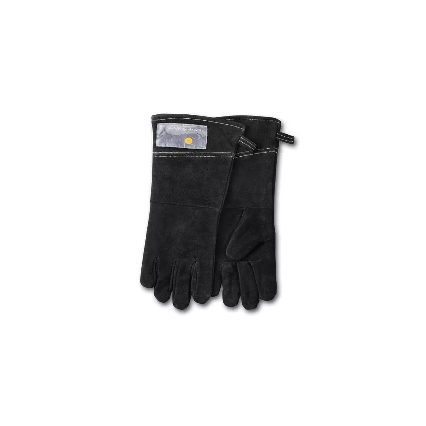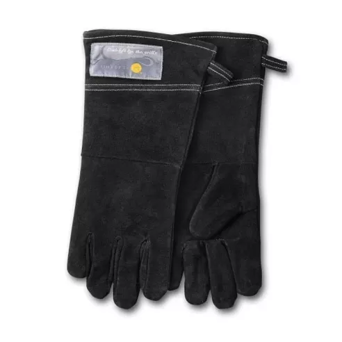 Juego de 2 guantes de 15 pulgadas,hecho de piel negra duradera y de calidad. Protege las manos y las muñecas del calor, las llamas y las chispas al asar. Ideal para barbacoa en el exterior o en el interior del ho