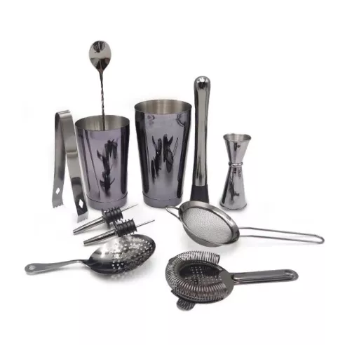 Prepare bebidas con su propio juego de barman de 11 piezas que es duradero, de alta calidad, fácil de usar y diseñado para durar. Su kit de camarero mejorará el sabor y la experiencia de mezcla de cualquier cóctel que elija. Es la compra ideal para aquellos interesados en hacer cócteles de calidad profesional en el bar de la casa. Ya sea un principiante o un profesional experimentado cuando se trata de mezclar bebidas, podrá hacerlo más rápido y fácilmente que nunca.USO: COCTELERIA