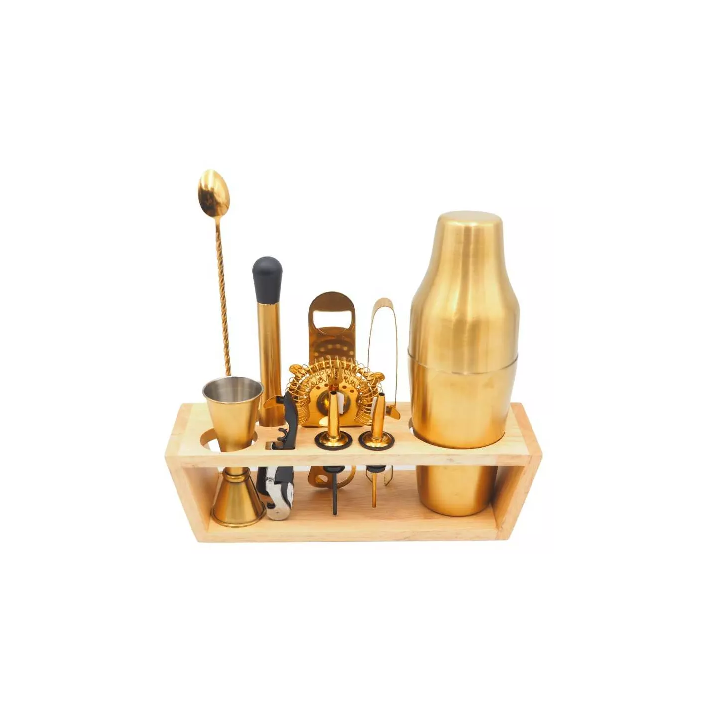 Herramientas para Bar Premium de Color Dorado con Base de Madera de 11 Piezas KING METAL BRSG210W