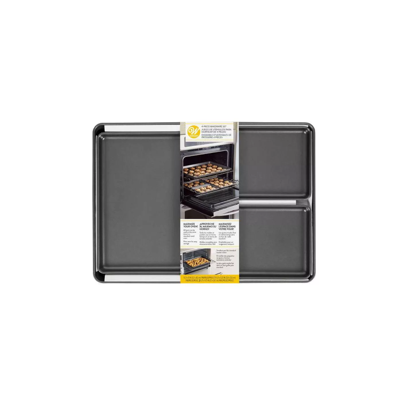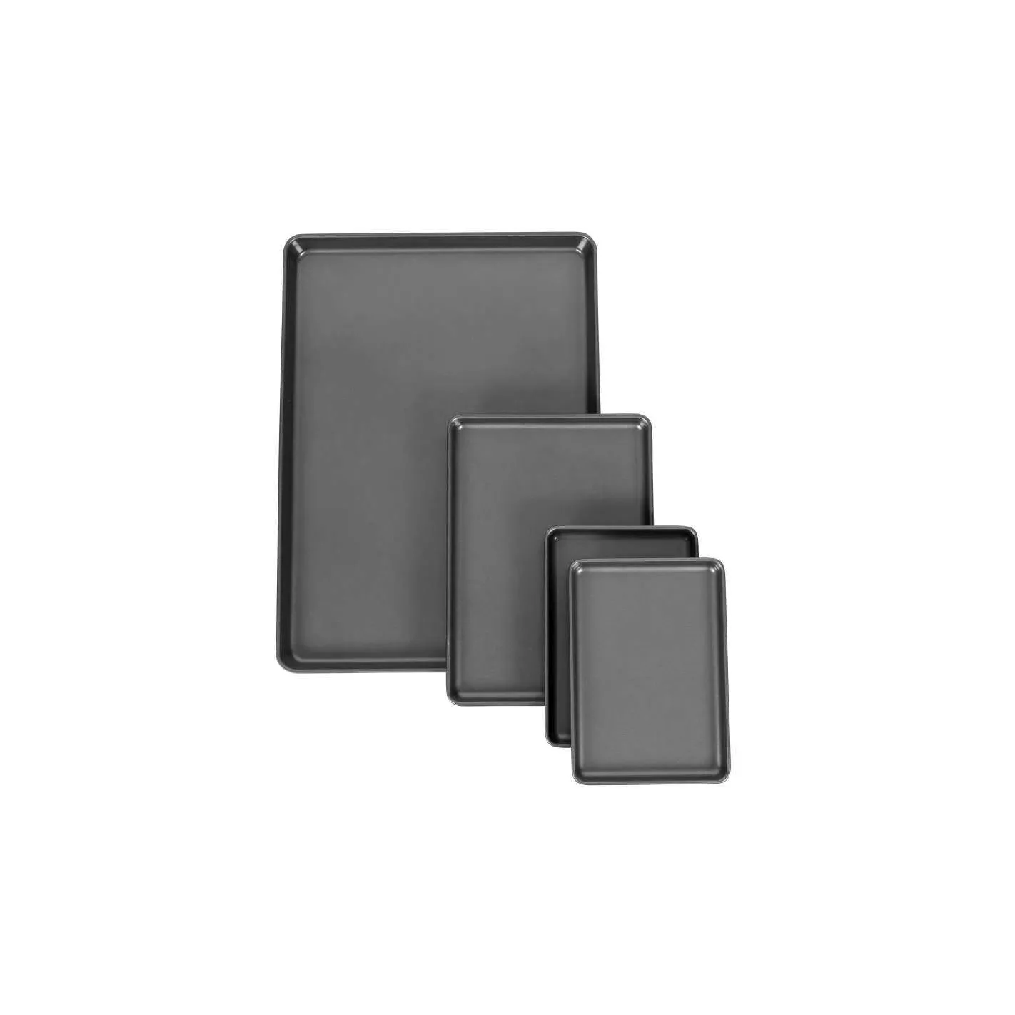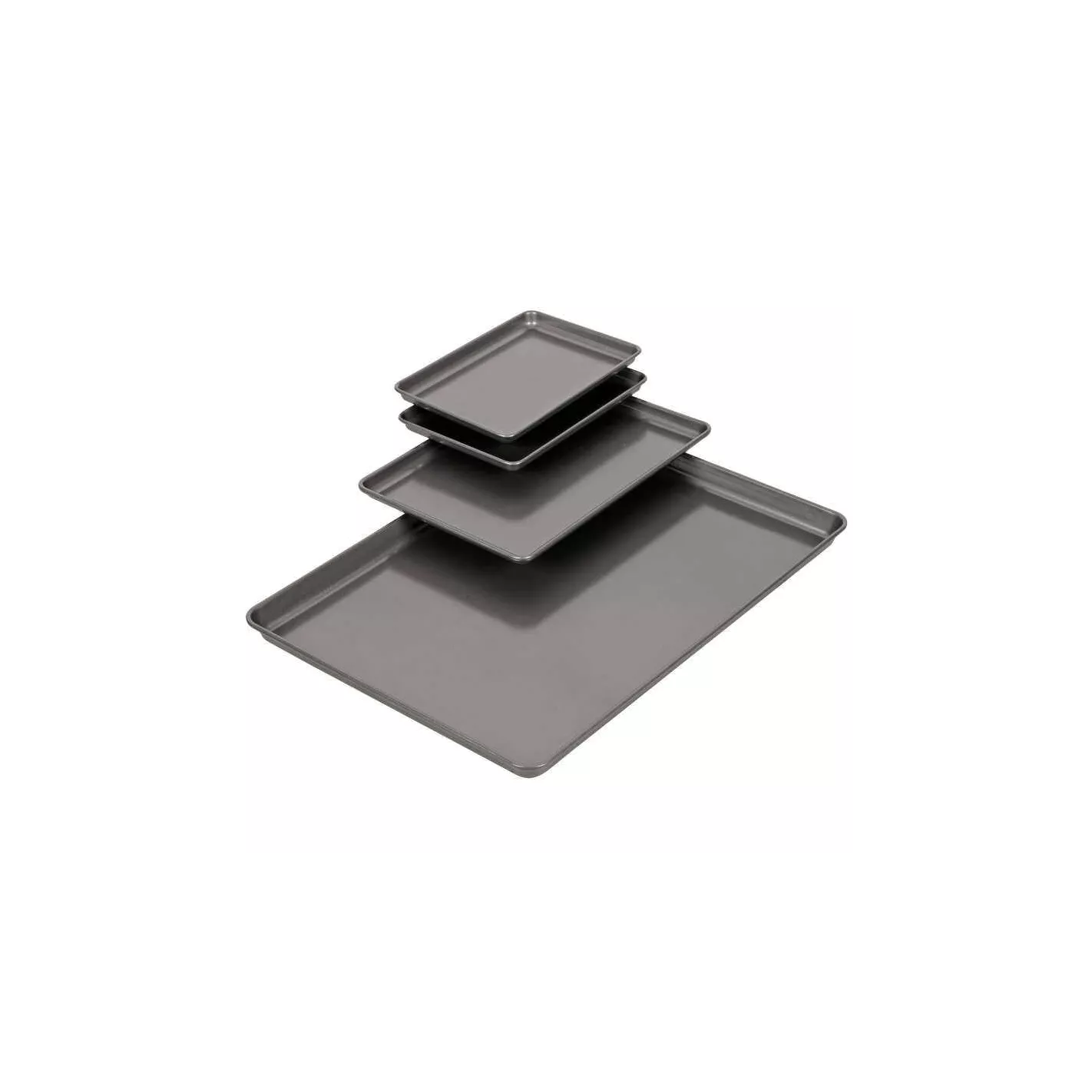 ¡Aproveche al máximo el espacio de su horno! Este práctico juego de 4 piezas está hecho para que pueda usar todas las bandejas de su horno a la vez. Es perfecto para hornear grandes lotes de galletas o asar diferentes verduras, aperitivos y panecillos para cenas navideñas. Las dos bandejas más pequeñas también tienen el tamaño adecuado para el horno tostador y le brindan la máxima flexibilidad. Se anidan fácilmente para su almacenamiento, y son todos antiadherentes y aptos para lavavajillas para una fácil limpieza. Incluye una bandeja de 15 x 21 pulgadas, una bandeja de 9.5 x 13.2 pulgadas y dos bandejas de 6.75 x 9.75 pulgadas.