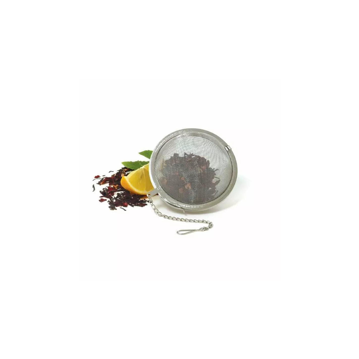Hecho de acero inoxidable duradero y malla, esta bola de té hace que preparar hojas sueltas de té y café sea fácil. A diferencia de las bolsitas de té, esta bola de té le permite hacer su té tan fuerte como desee. La cadena y el gancho unidos le permiten sujetarlo cómodamente a sus tazas, tazas de viaje y teteras. Con un tamaño de 2 pulgadas, esta bola de té es perfecta para preparar una taza o una olla llena, así como para infundir especias en sus salsas o vinos y sidras de invierno, ¡un complemento esencial para tu cocina!