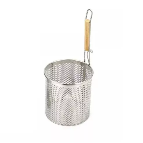 Las ollas grandes de agua hirviendo pueden ser un peligro al colar en el fregadero. En lugar de sentir que has estado levantando pesas después de cocinar, utiliza la cesta de pasta para hervir. Utilízalo como un colador de pasta en maceta, cesta de colador de fideos asiáticos, cesta de ramen, colador de fideos pho o cesta de ebullición de verduras. Se cocina 1 libra o menos de pasta (dependiendo del estilo). Colador de araña de malla no diseñado para fideos finos o delgados.