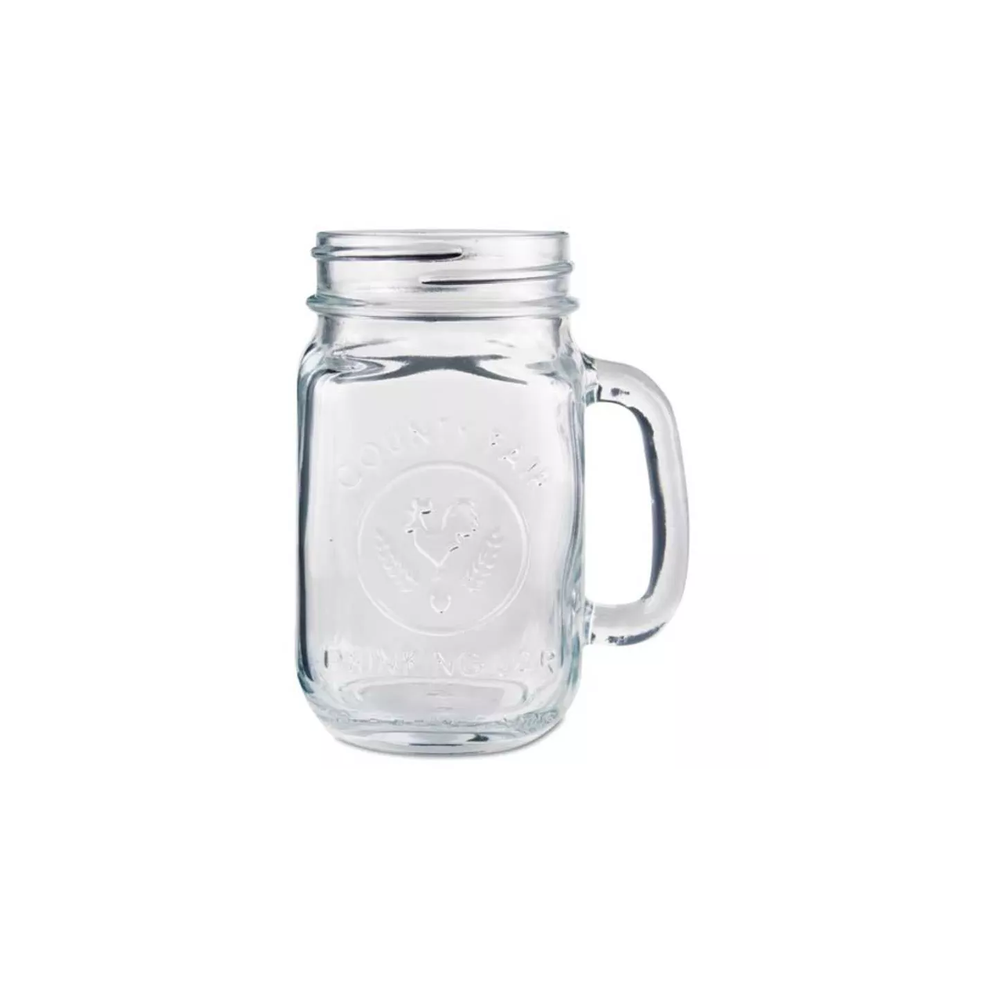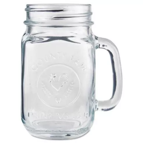 El tarro de albañil también se puede usar para servir refrescos, helados y batidos de cerveza de raíz. Incluso puede llevar su evento, fiesta o boda al siguiente nivel transformando esta cristalería en una pieza central única.Todos estos vasos para beber tienen la frase "County Fair Drinking Jar" acompañada de la imagen de un gallo, por lo que seguramente agregarán una apariencia encantadora a su restaurante, bar o pub.