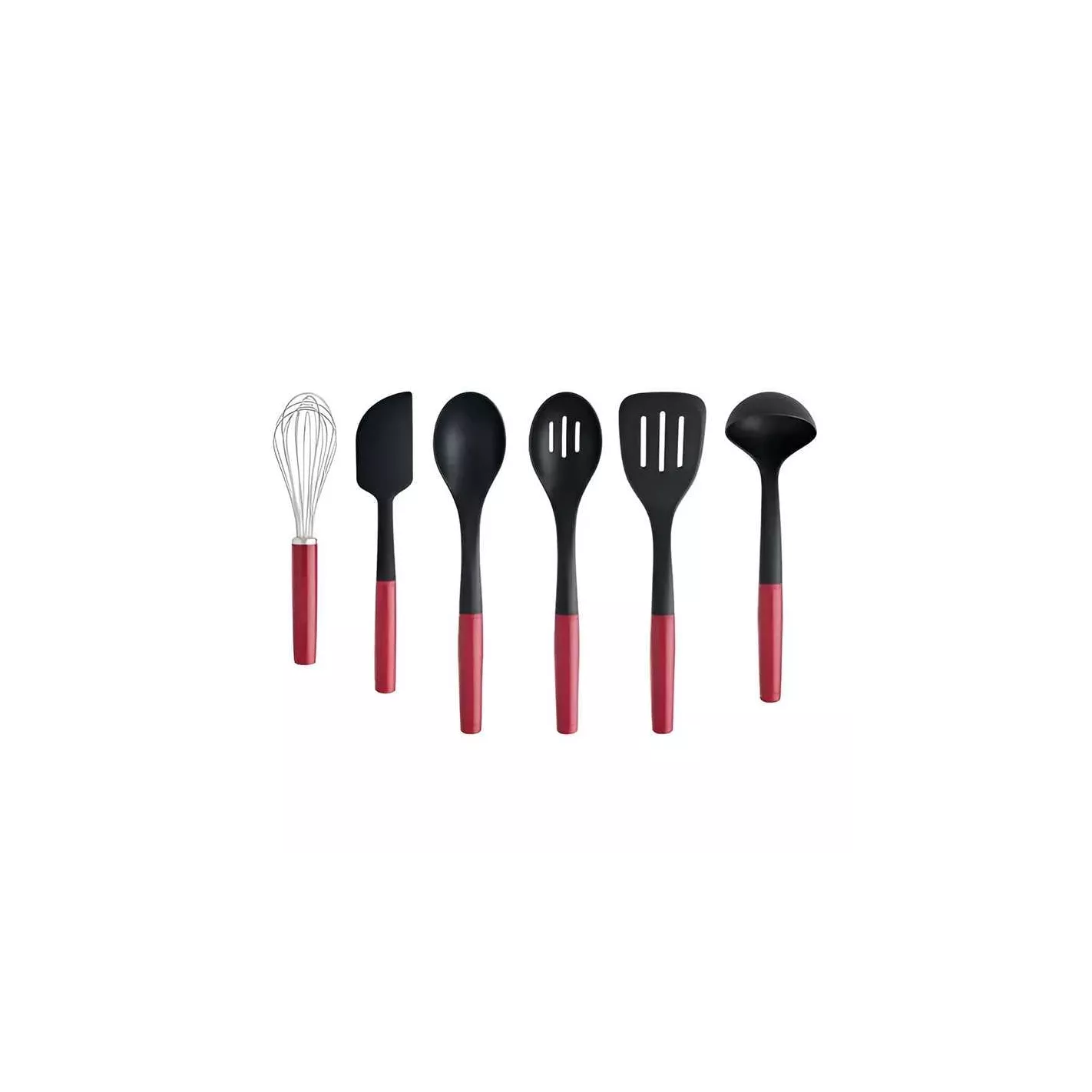 Con todo lo que necesitas para cocinar, este juego de utensilios de cocina de nylon de 6 piezas de KitchenAid incluye una espátula ranurada, una cuchara para untar, una cuchara ranurada, un cucharón, una espátula raspadora y un batidor de globo. Las herramientas son resistentes, duraderas y seguras para todos los utensilios de cocina, incluidos los antiadherentes (excepto el batidor de acero inoxidable). Los cabezales son resistentes al calor hasta 232 °C/450 °F.