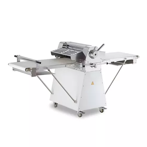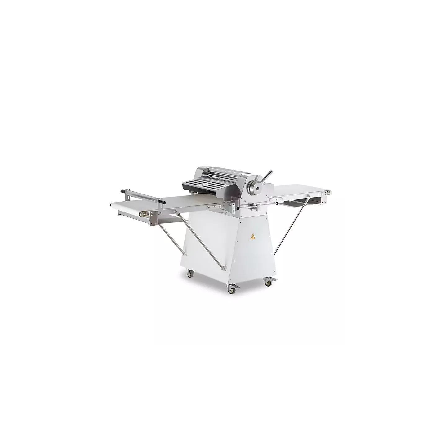 Equipada con rodillos de 520 mm de ancho y 88 mm de diámetro, permite ajustar el grosor de la masa entre 1 y 35 mm, adaptándose a diversas preparaciones. Las bandas transportadoras de 2000 x 550 mm y su capacidad para procesar hasta 5 kg de masa por ciclo la convierten en una herramienta indispensable para producciones medianas y grandes.