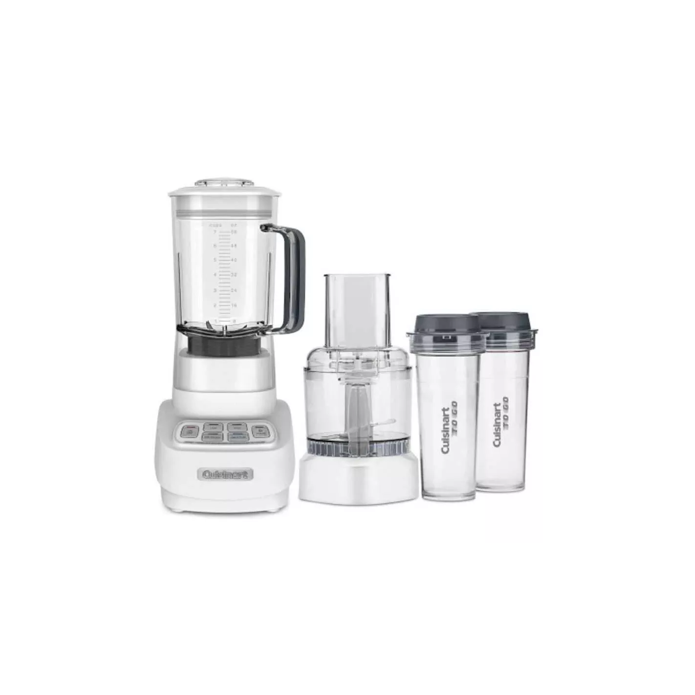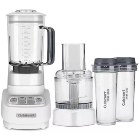 Mezcle, pique, haga puré y luego llévelo sobre la marcha con la licuadora y procesador de alimentos Cuisinart Velocity Ultra Trio 1 HP con vasos de viaje. Este versátil compañero de cocina 3 en 1 está a punto de convertirse en su nuevo mejor amigo.Con un procesador de alimentos con capacidad para 3 tazas, una licuadora de 56 onzas y 2 16 Vasos de viaje de -onzas, podrás dejar fluir la creatividad mientras cocinas. Desde hacer puré de frutas y verduras hasta picar hielo, las configuraciones preprogramadas y las cuchillas de acero inoxidable ultra afiladas asegurarán que todo salga bien en cada paso del camino. Este dúo de licuadora y procesador de alimentos funciona con un motor de 1 caballo de fuerza.