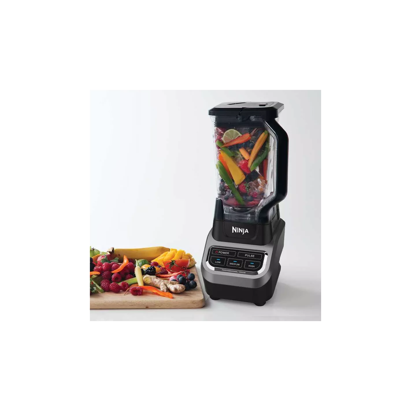 Prepare batidos en menos de un minuto con la batidora profesional Ninja de 1000 vatios. Esta potencia compacta de mostrador convierte el hielo en nieve en segundos, pulveriza frutas y verduras enteras en jugos frescos y mezcla yogur, sorbetes y frutas congeladas en batidos a la velocidad del rayo. La jarra de 72 oz tiene un tamaño generoso para producir múltiples porciones, con un pico vertedor de tamaño generoso y un mango resistente y texturizado para un agarre sin resbalones.