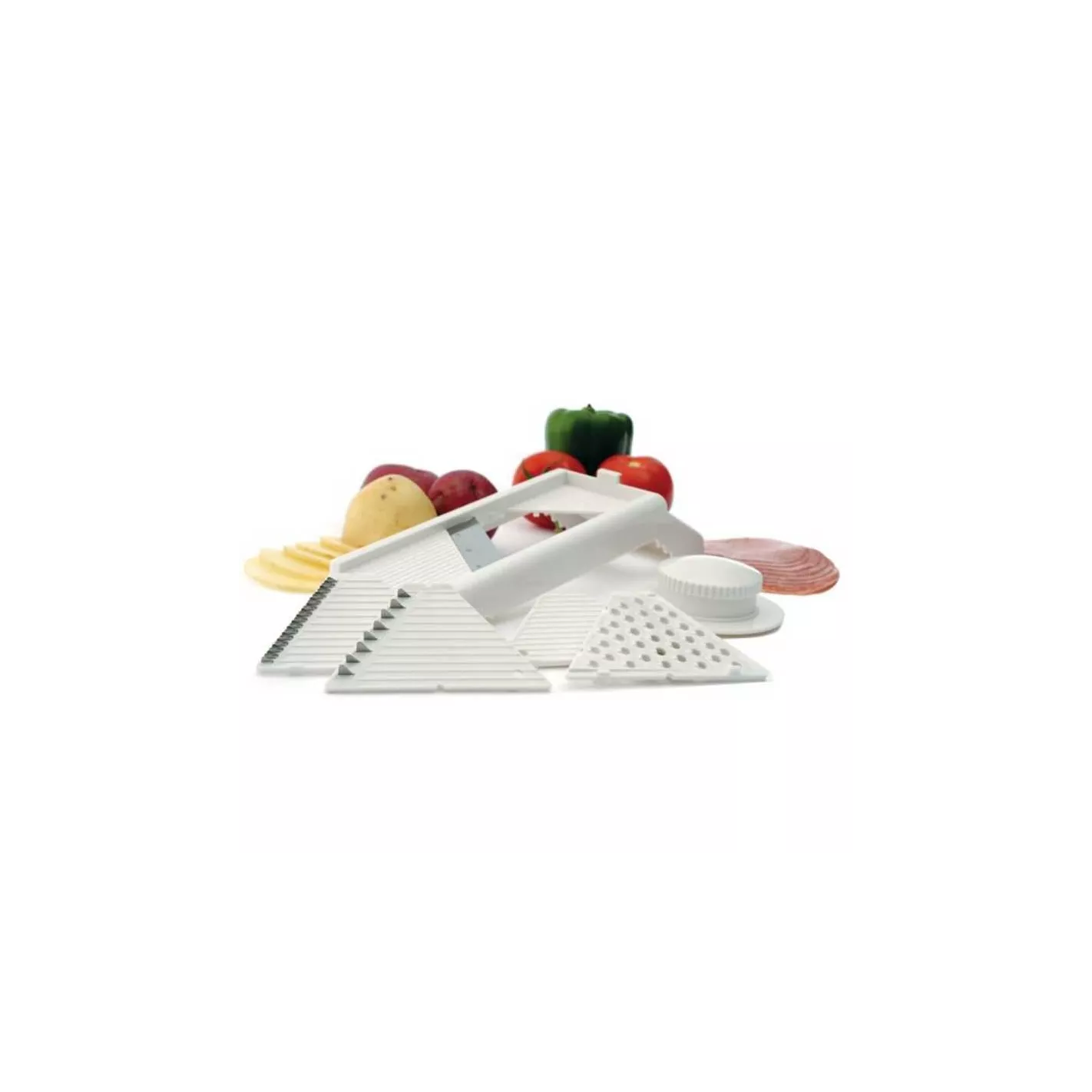 Rebanadas, cortes, julianas, incluye 3 accesorios de corte con cuchillas de acero inoxidable. Ideal para cortar una variedad de frutas y verduras o quesos.