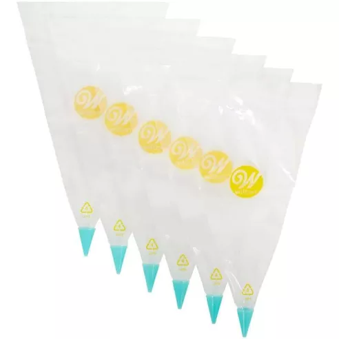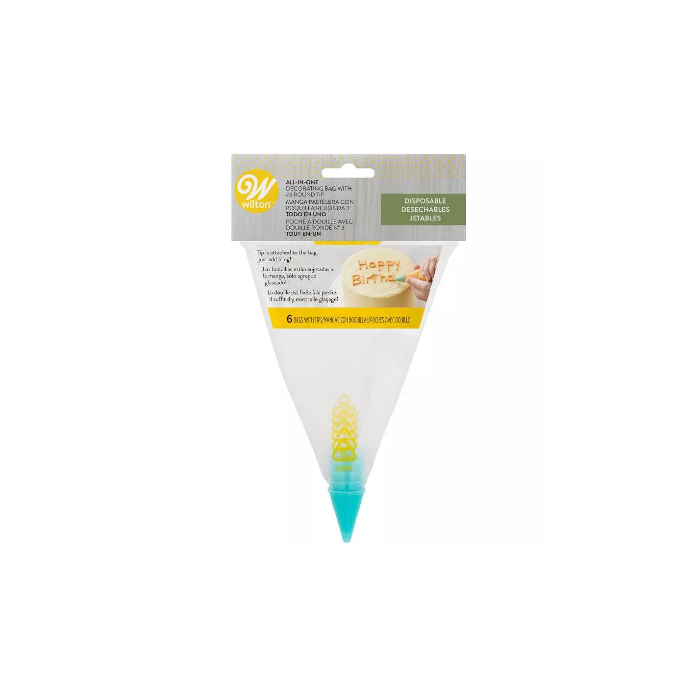 La manga desechable con punta adjunta facilita la decoración de todas sus golosinas, solo agregue glaseado. Cuenta con la boquilla número 3, ideal para dibujar contornos y escribir. Las mangas de decoración miden 30.4 centímetros (12 pulgadas). Cantidad: 6 unidades. La manga y la boquilla son desechables; enjuagar, secar y reciclar.
