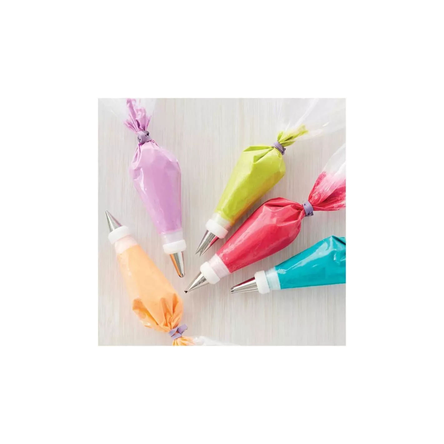 Póngase su sombrero de decoración de pasteles y comience con estas bolsas desechables de decoración de pasteles fáciles de usar. Rellene con glaseado o úselos para derretir Candy Melts, luego tome sus consejos favoritos y comience a decorar. Úselo para bolsas de pastelería para facilitar la cocción. Solo utilice las mangas y luego desechelas, mangas de plástico fuerte y flexible.