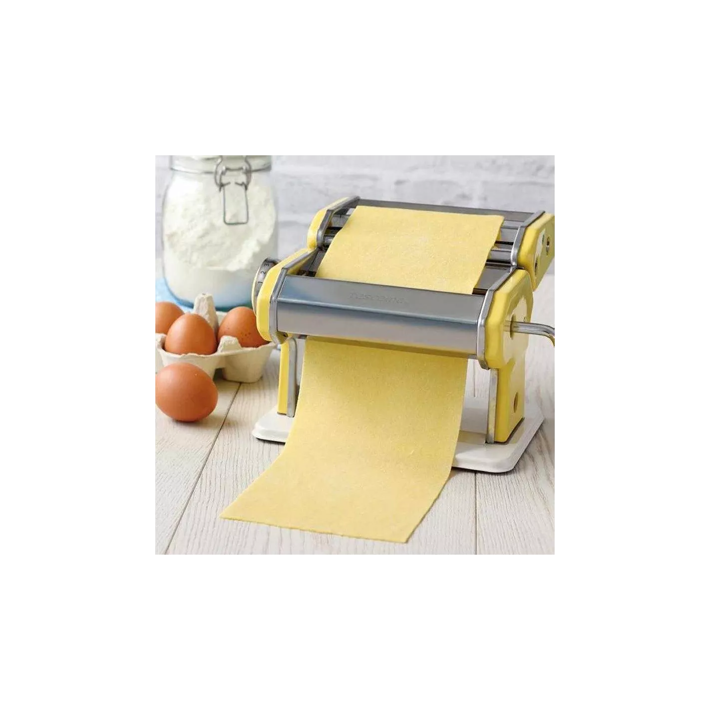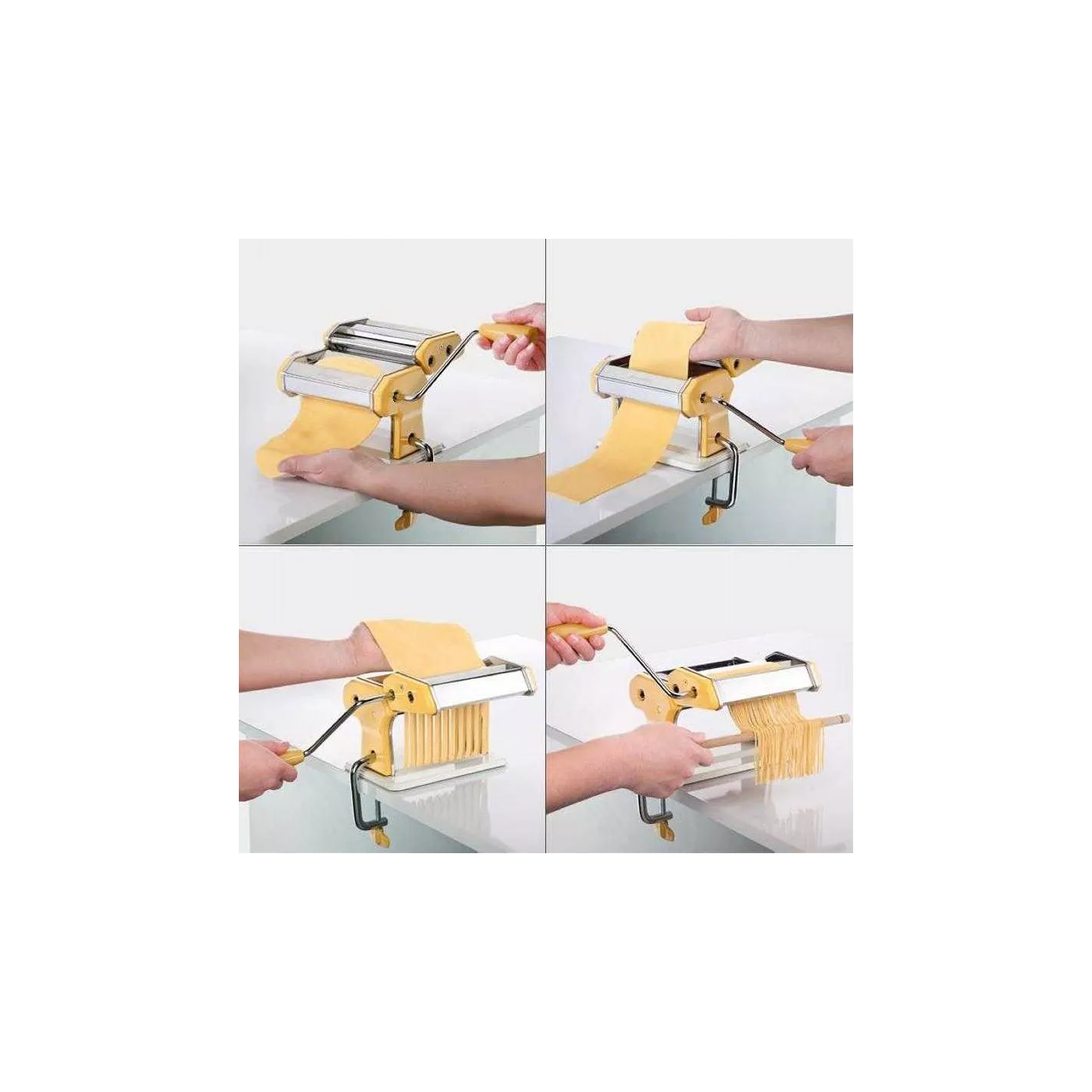 Ideal para preparar diferentes tipos de pasta fresca, como lasañas, fettuccine y tagliatelle, esta máquina combina funcionalidad, durabilidad y estilo en un solo producto. Su diseño robusto, elaborado con acero inoxidable y detalles en materiales resistentes, garantiza una larga vida útil y un uso sencillo. Incluye un rodillo ajustable para diferentes grosores de masa, así como un manivela ergonómica que facilita su operación.