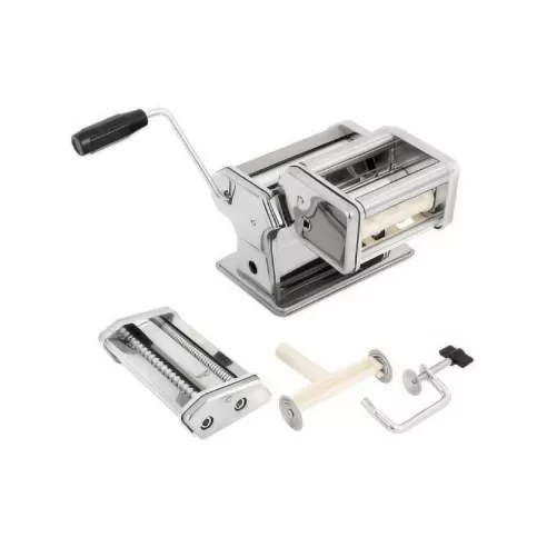 Esta máquina para hacer pasta de alta calidad es perfecta para los amantes de la cocina que desean preparar pasta fresca. Fabricada en acero inoxidable, garantiza durabilidad y resistencia al uso continuo. Cuenta con rodillos ajustables que permiten controlar el grosor de la masa, ideal para diversos tipos de pasta como lasaña, fettuccine y espaguetis. Su diseño incluye un mango ergonómico para un fácil manejo y una abrazadera para fijarla de manera segura a la mesa o encimera. Además, incluye accesorios intercambiables que amplían las posibilidades de corte, facilitando la personalización de sus creaciones culinarias.COLOR: PLATEADO