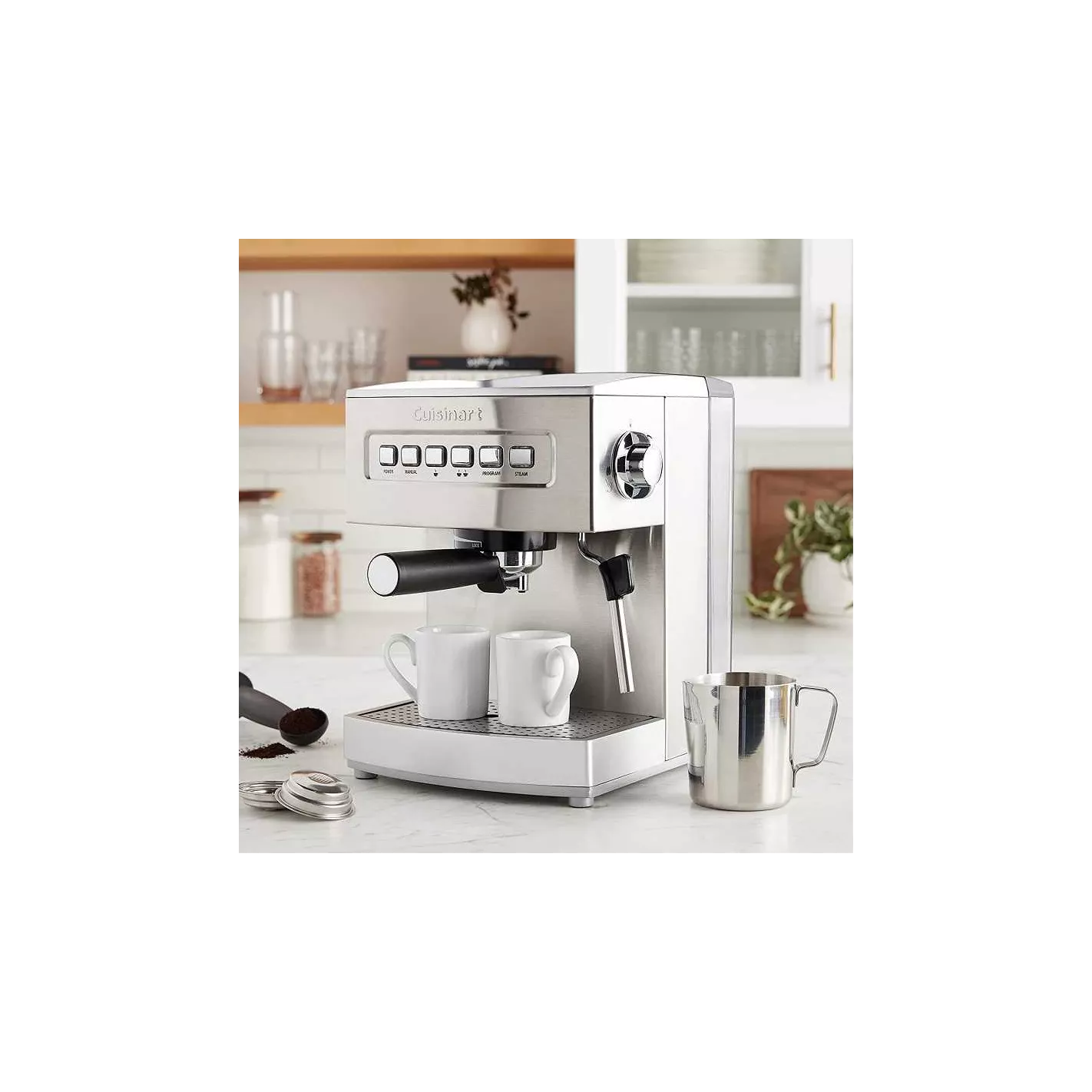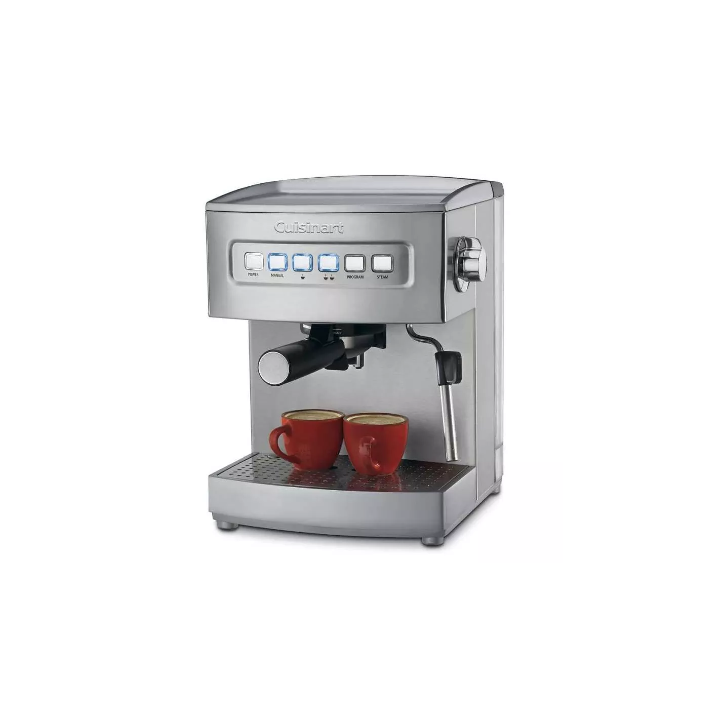 Programe un expresso simple o doble y saboree los ricos sabores que Cuisinart ofrece con 15 bares de presión, o agregue agua caliente para un Americano, o agregue leche espumosa para un capuchino cremoso o un delicioso café con leche. La boquilla de tallo inoxidable y la copa de espuma facilitan las bebidas baristas. El programable Expresso Maker también cuenta con una placa para calentar tazas, una bandeja de goteo extraíble y una cubierta para mayor comodidad.