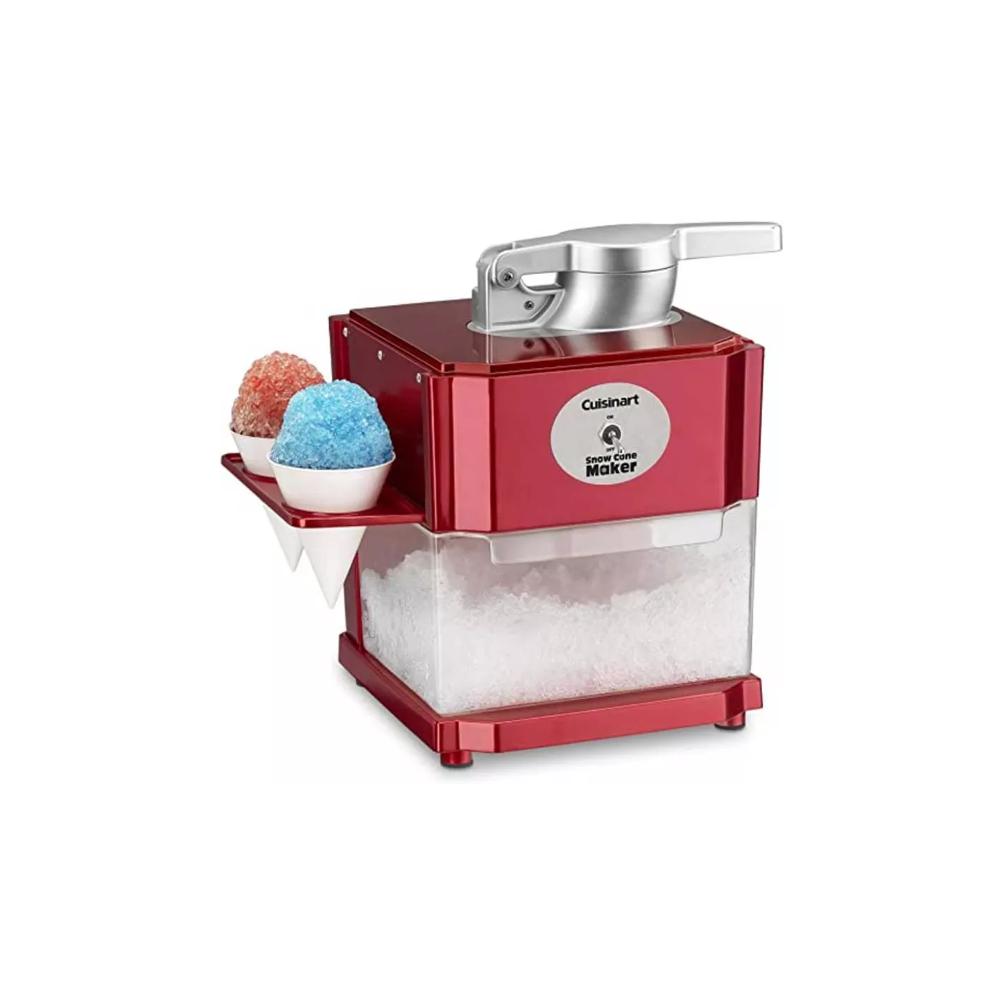Crea hielo raspado real para conos de nieve, granizados, limonadas congeladas o bebidas para adultos, utiliza cubitos de hielo regulares y jarabes o jugos simples - recetas incluidas, fácil de armar y usar: solo presionar un interruptor para comenzar a raspar hielo. Produce suficiente hielo para 4-5 conos en menos de un minuto. Todas las partes que entran en contacto con los alimentos no contienen BPA. Todo lo que necesita es hielo, jarabe con sabor y un fabricante de cono de nieve Cuisinart para disfrutar de dulces divertidos y helados en casa en cualquier momento.