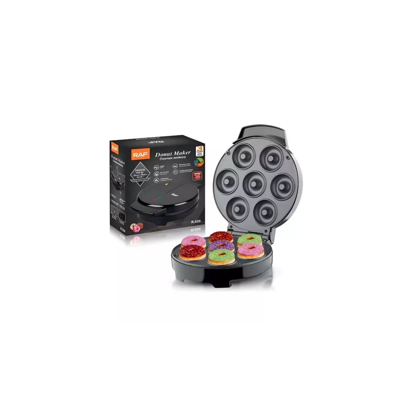 La máquina para hacer mini donuts es antiadherente física con revestimiento de maceta antiadherente, que no será fácil de pegar en la parte inferior y fácil de limpiar. La luz indicadora de calentamiento se apaga cuando la temperatura excede la temperatura establecida y se enciende cuando la temperatura es inferior a la temperatura establecida.