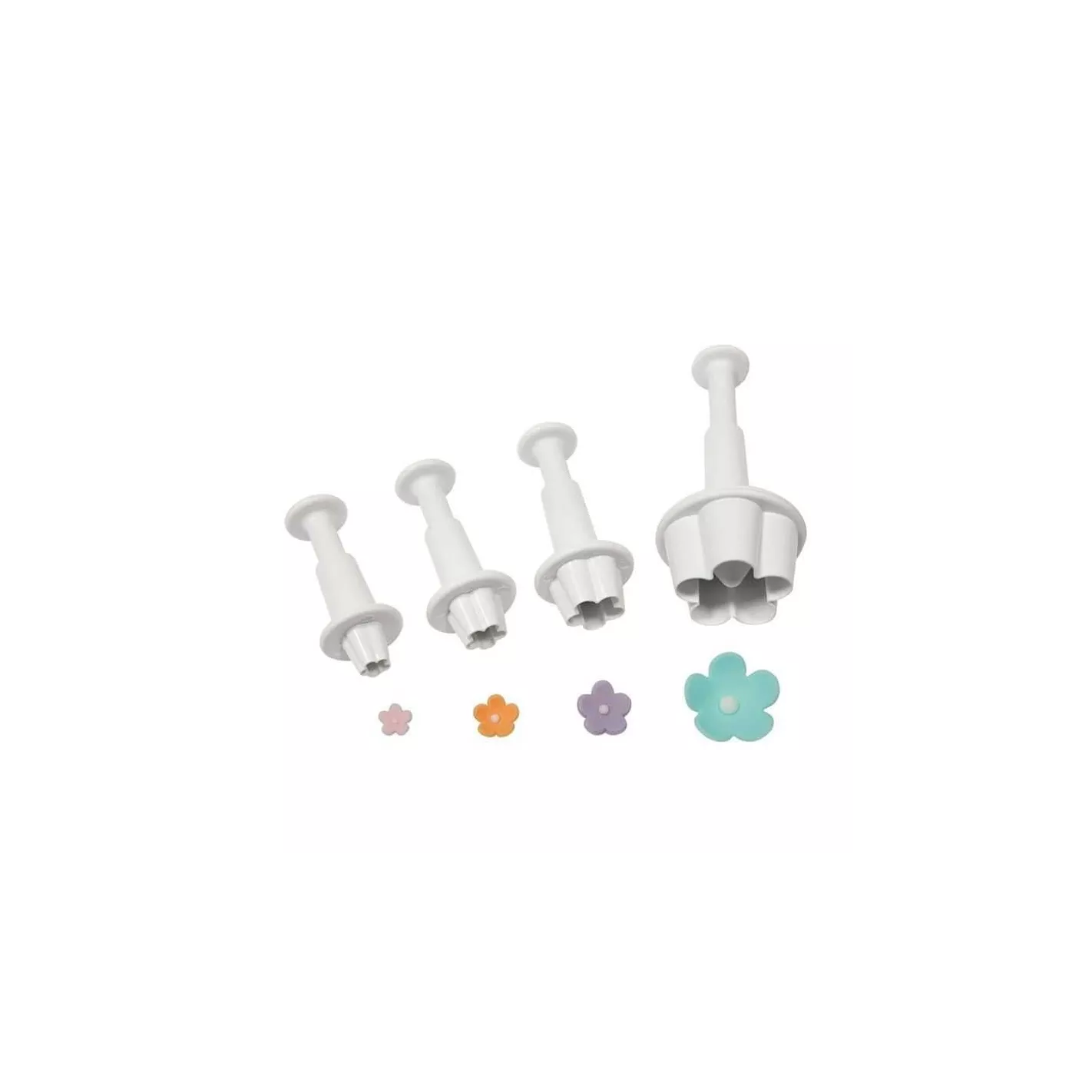 Este juego de 4 marcadores con expulsor en forma de flor es ideal para crear decoraciones elegantes y detalladas en fondant, mazapán, pasta de goma y otros materiales comestibles. Perfecto para pasteles de bodas, cumpleaños, baby showers y eventos primaverales, estos cortadores facilitan la creación de flores con bordes limpios y detalles precisos.
