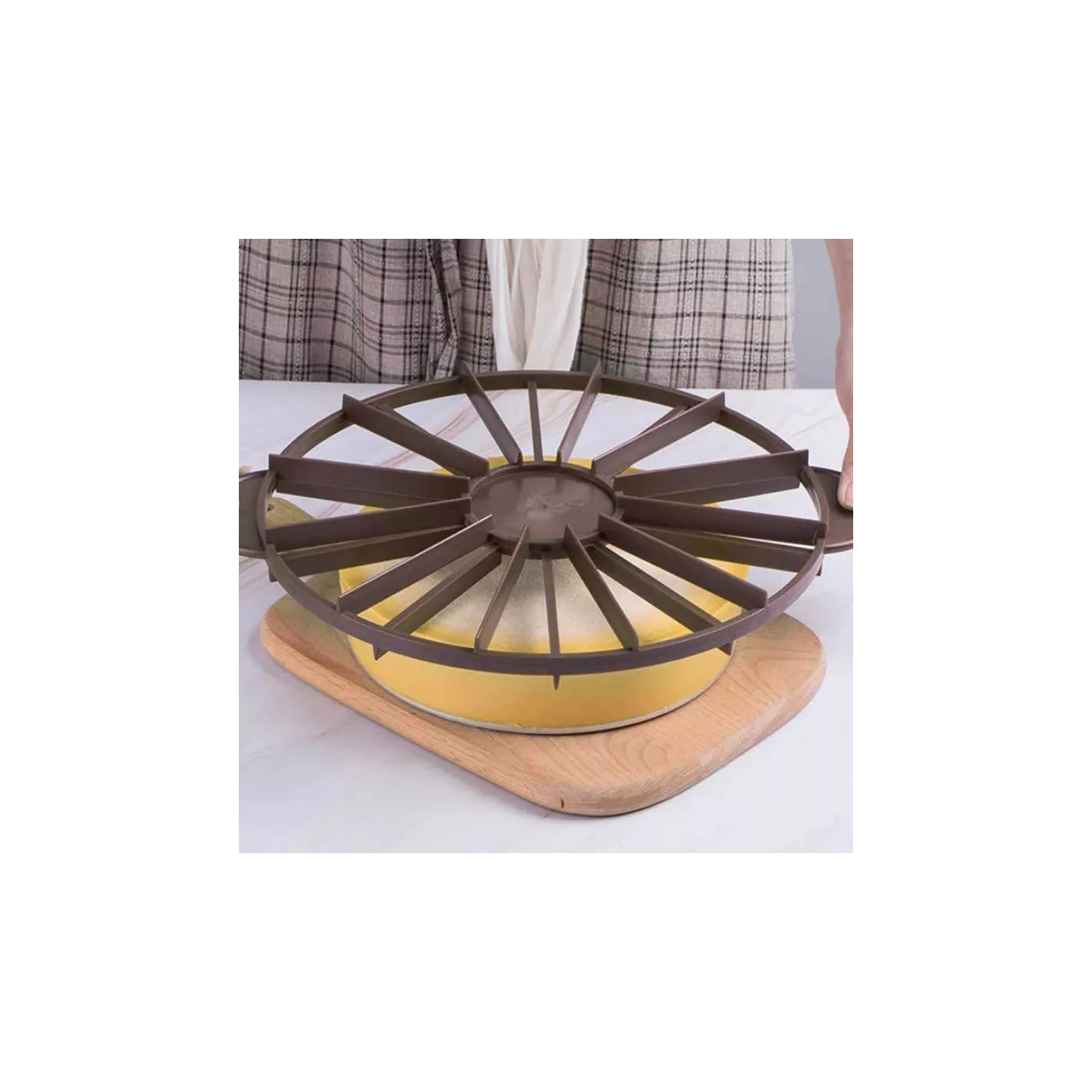 Asegúrate de centrar la herramienta en el centro de tu postre o bien horneado, o tus rebanadas serán desiguales. Intenta marcar o perforar un agujero en el centro de tu artículo si puedes, luego utilízalo para centrar visualmente el cortador antes de presionarlo.