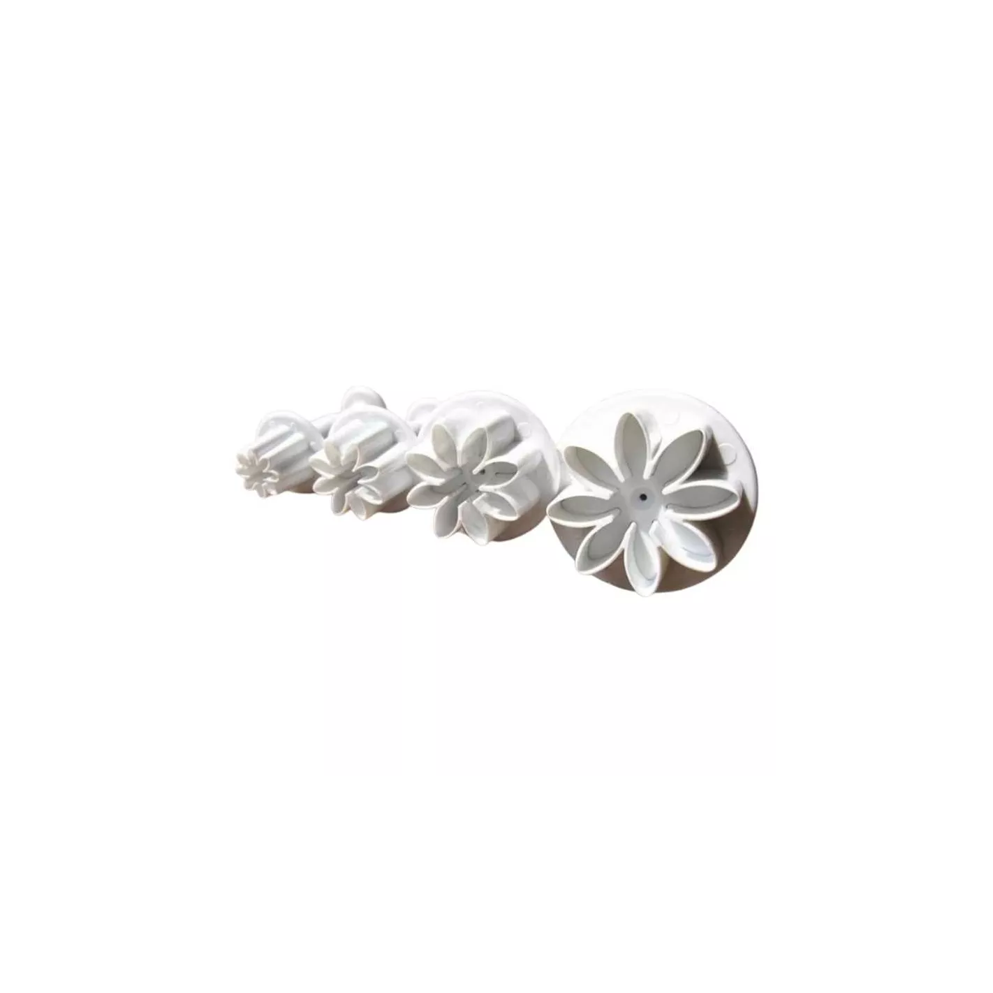 Este set de cortadores con expulsor en forma de margaritas es ideal para crear decoraciones originales a base de fondant, masa y pasta de goma para decorar cupcakes, galletas, pasteles, etc. Fácil de usar, solamente presione el cortador sobre la masa y expulse con el eyector. Están diseñados para un agarre y uso muy cómodo. Se recomienda lavar a mano con agua tibia y jabón.